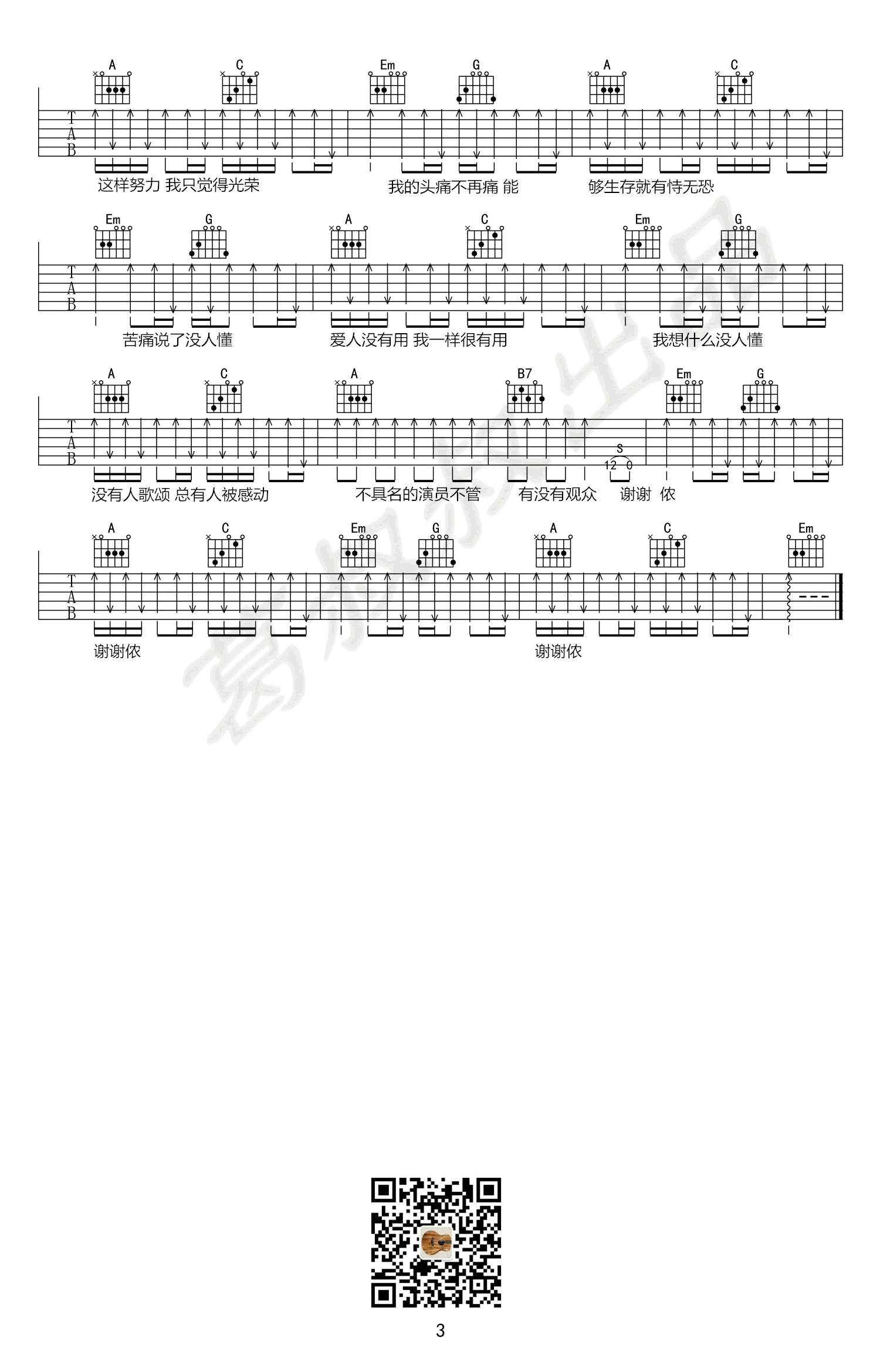 - 阴天快乐吉他谱 陈奕迅 吉他教学演示视频 图片谱