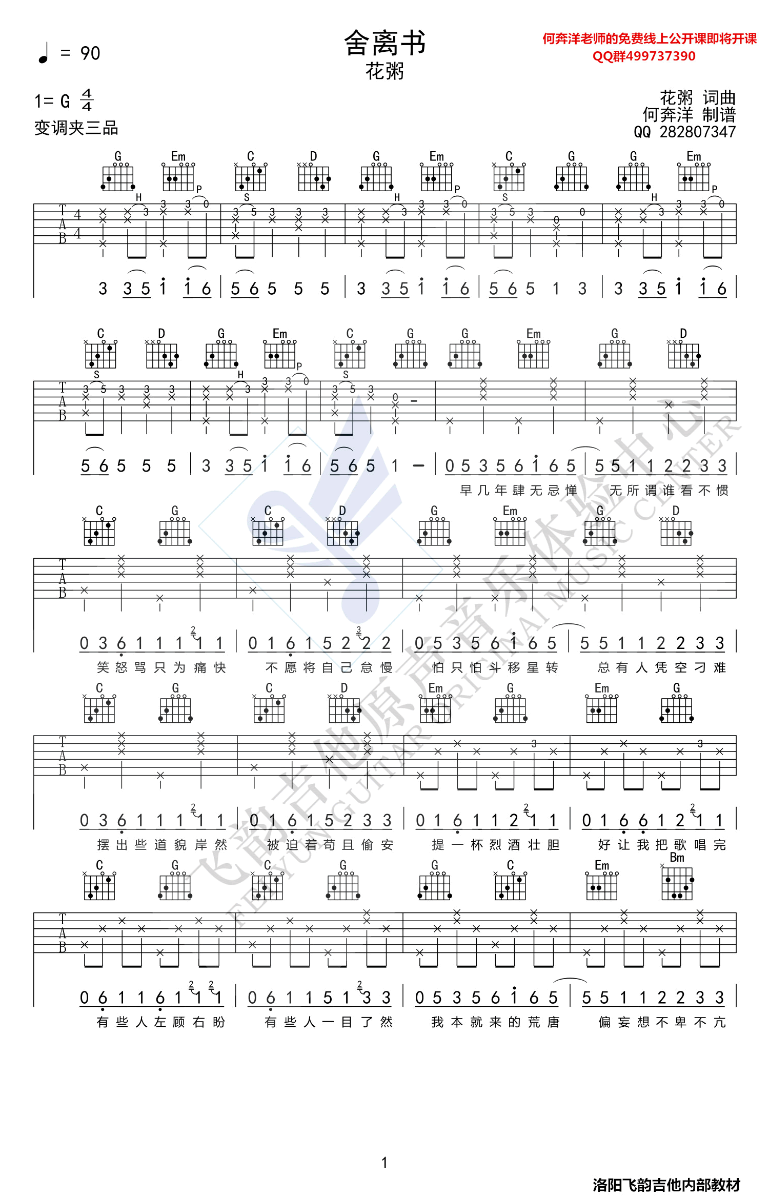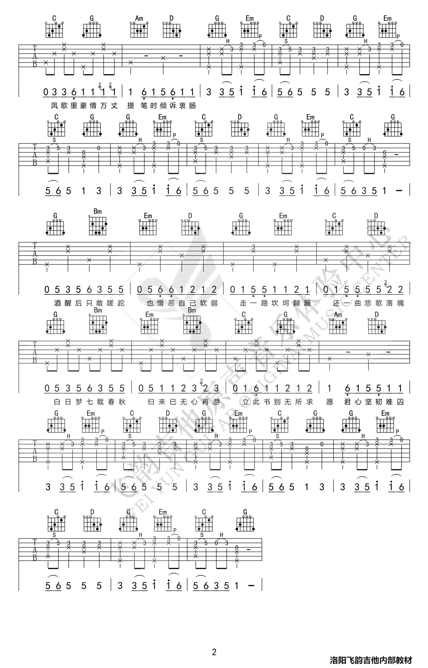 - 南来北往吉他谱 花粥 弹唱六线谱 手写版