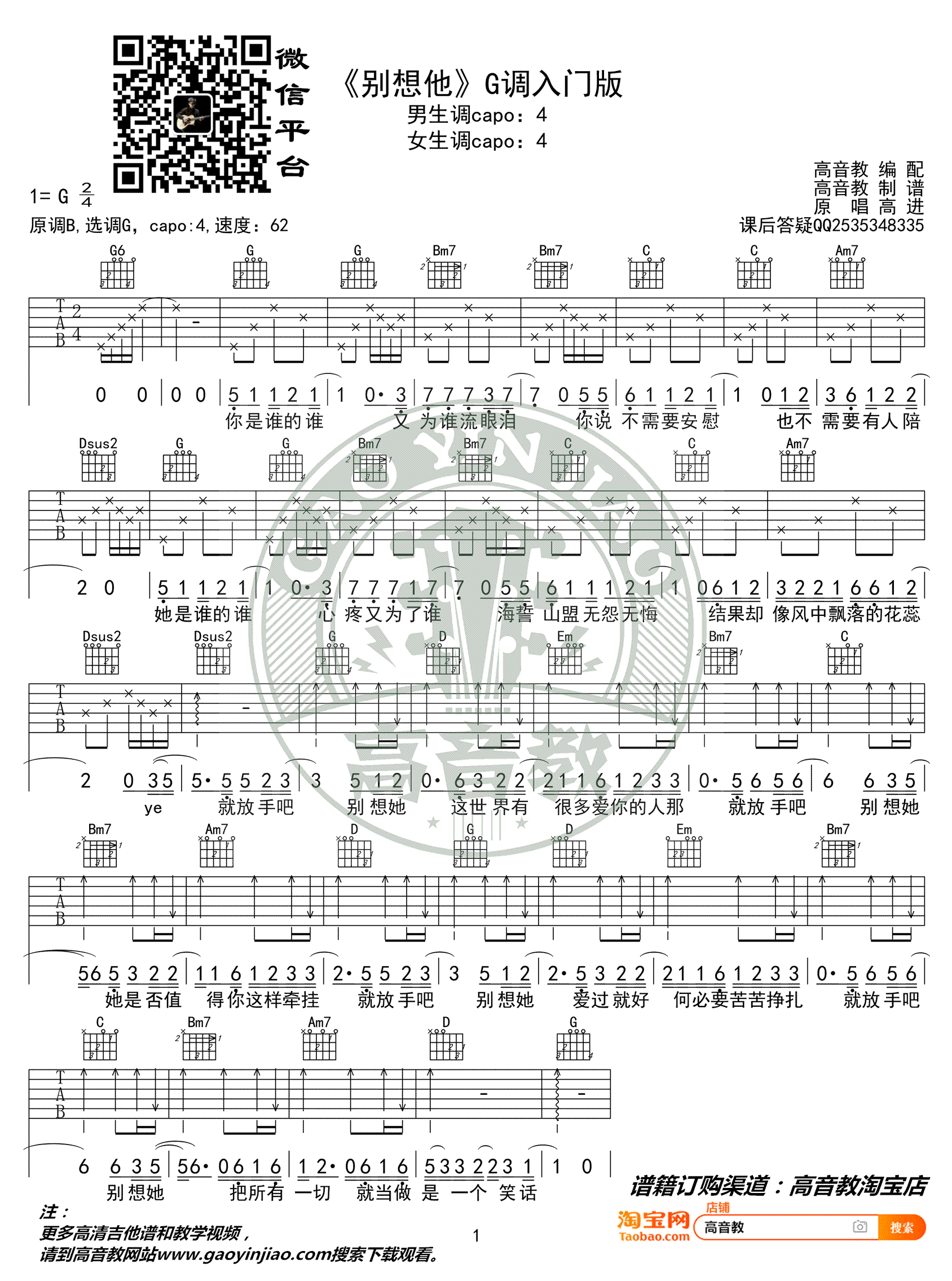 - 隔壁泰山吉他谱 阿里郎 G调六线谱 抖音歌曲