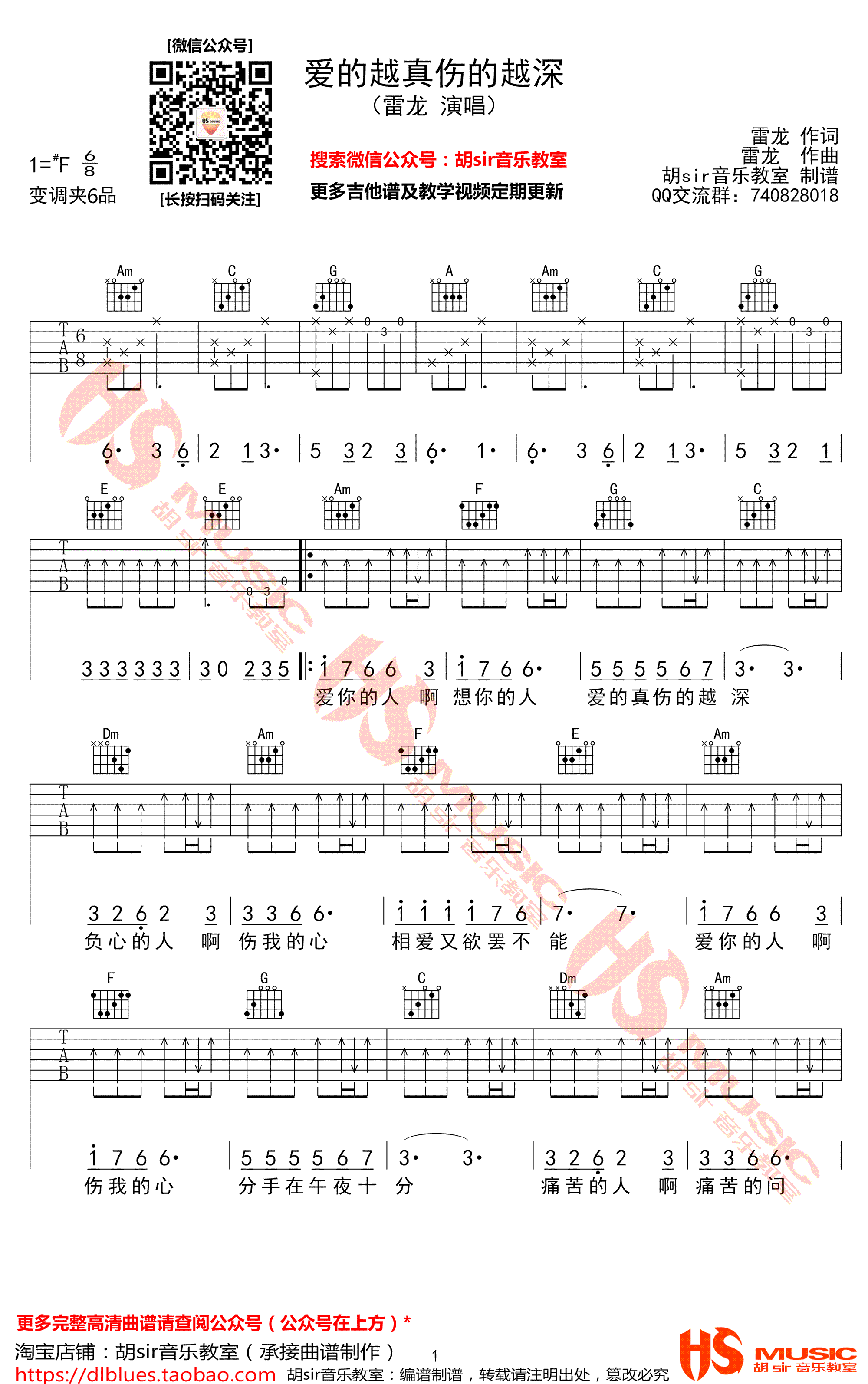 爱的越真伤的越深吉他谱,雷龙演唱的一首伤感网络歌曲,原调#F,选用C调指法,爱的越真伤的越深六线谱,三张弹唱图片谱高清版,感谢胡sir音乐教室编配,易唱网首发上传。