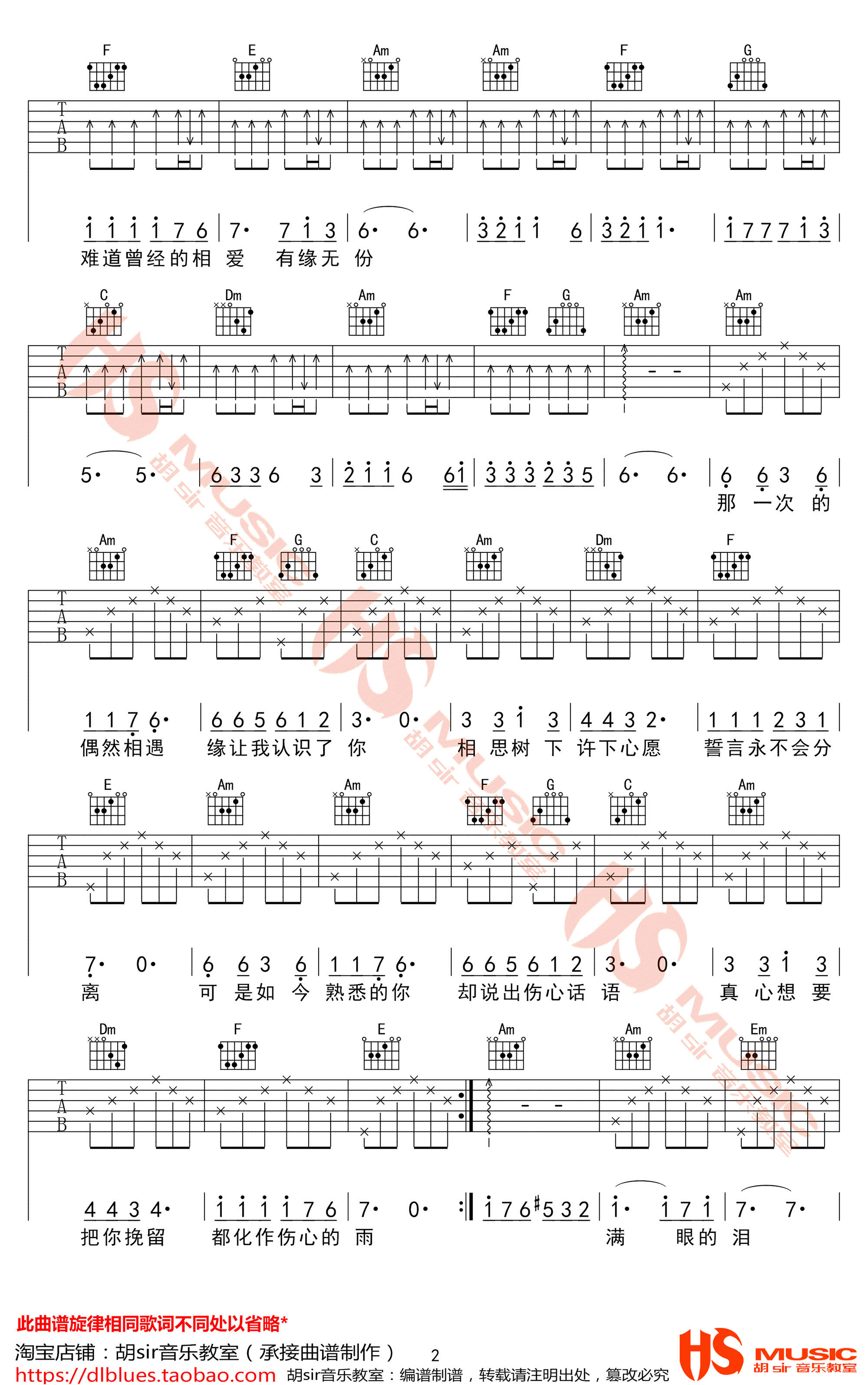 - 一曲相思吉他谱 半阳 弹唱六线谱 抖音歌曲
