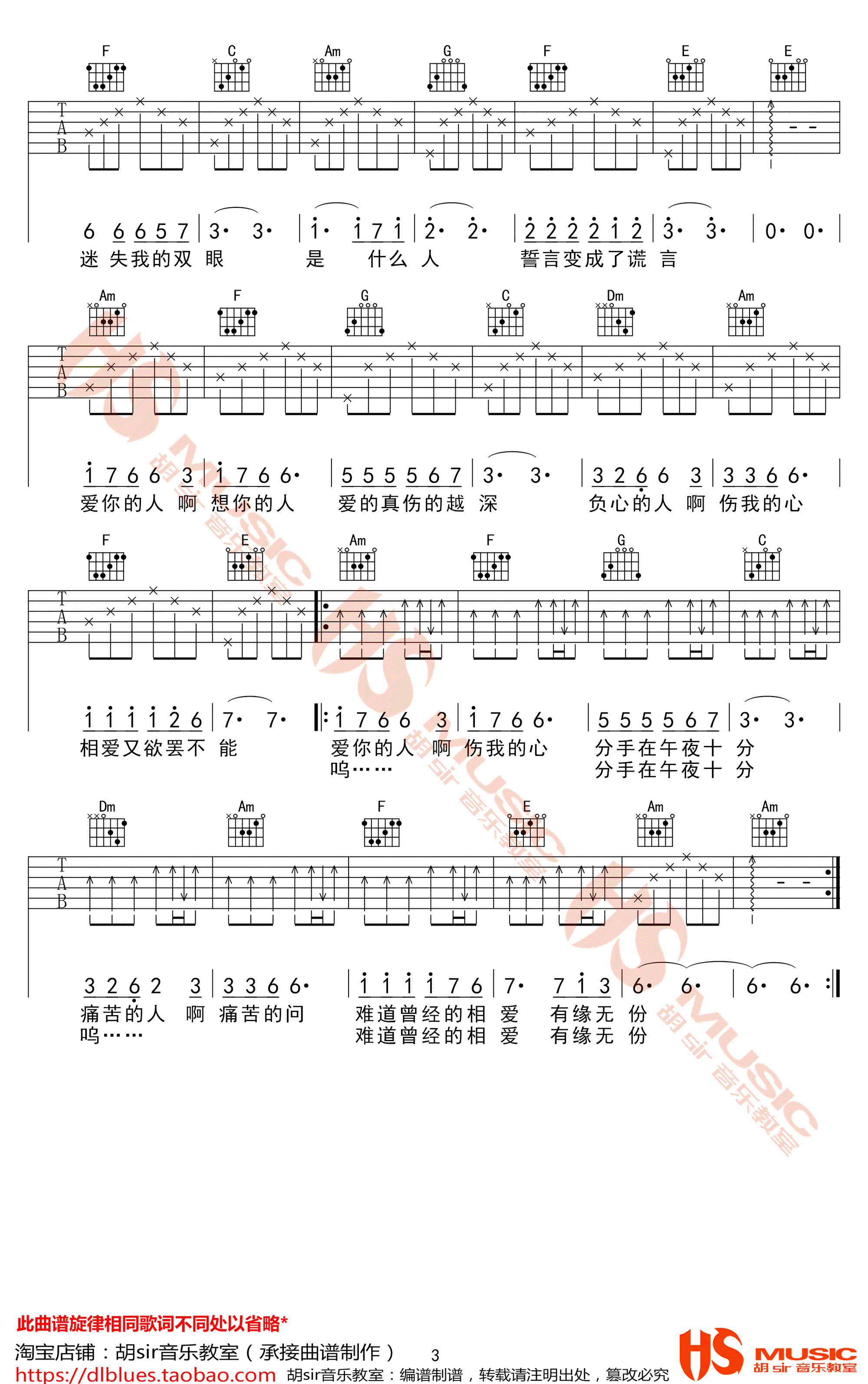 - 陈硕子《凌晨三点》吉他谱 C调入门版 弹唱六线谱