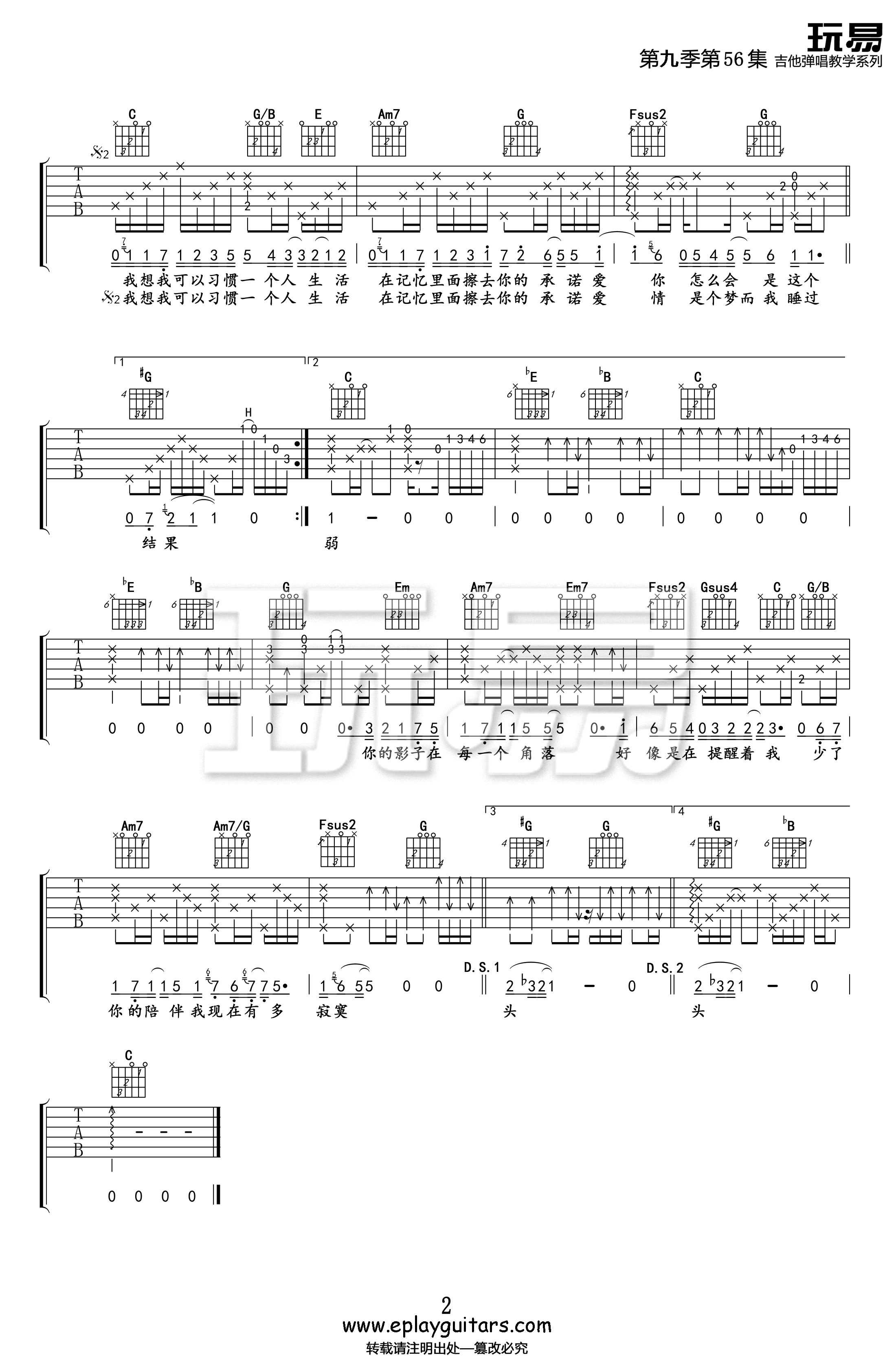- 有可能的夜晚吉他谱 曾轶可 C调六线谱 高清版