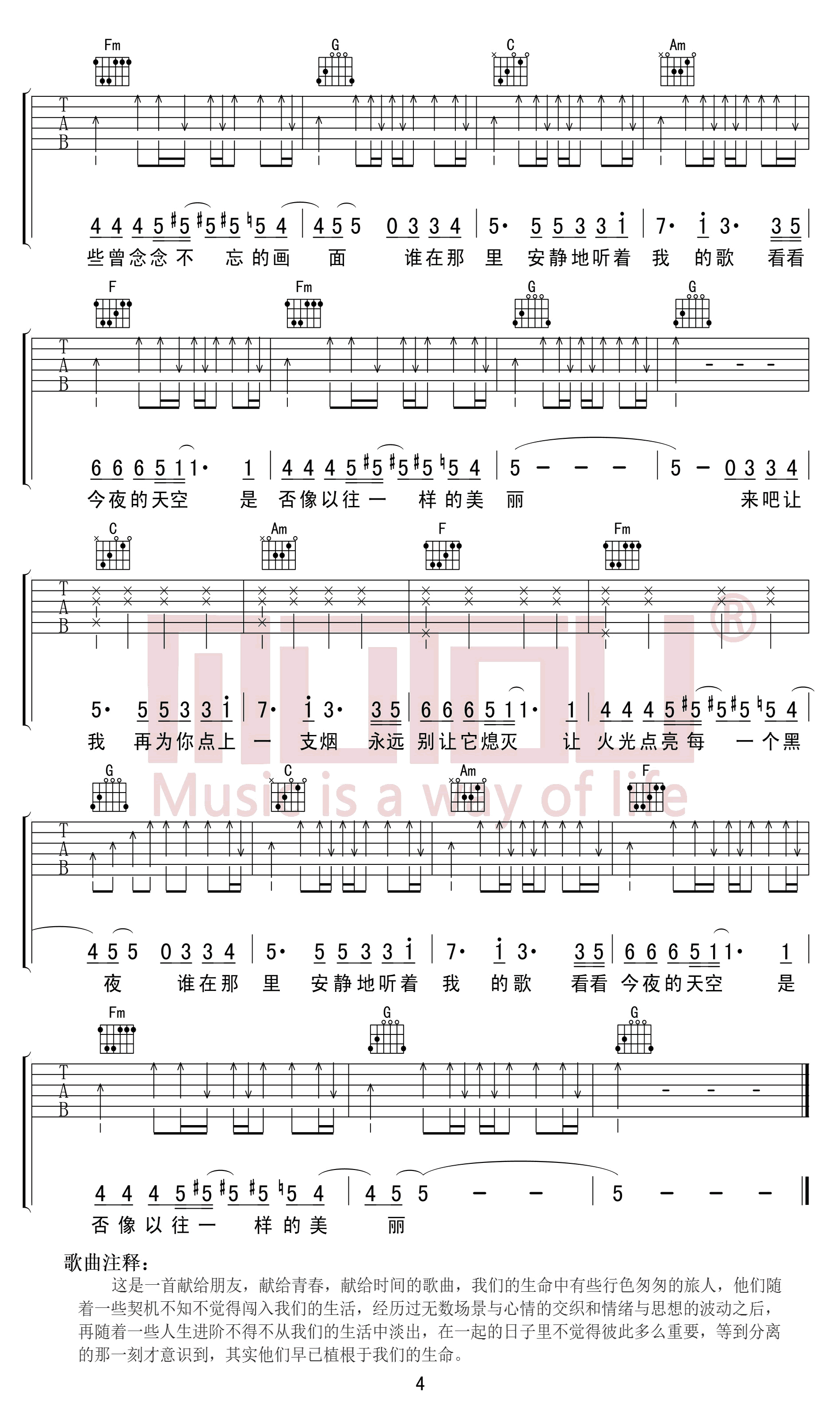 - 苏芮《奉献》吉他谱 G调入门版 韩寒《飞驰人生》片尾