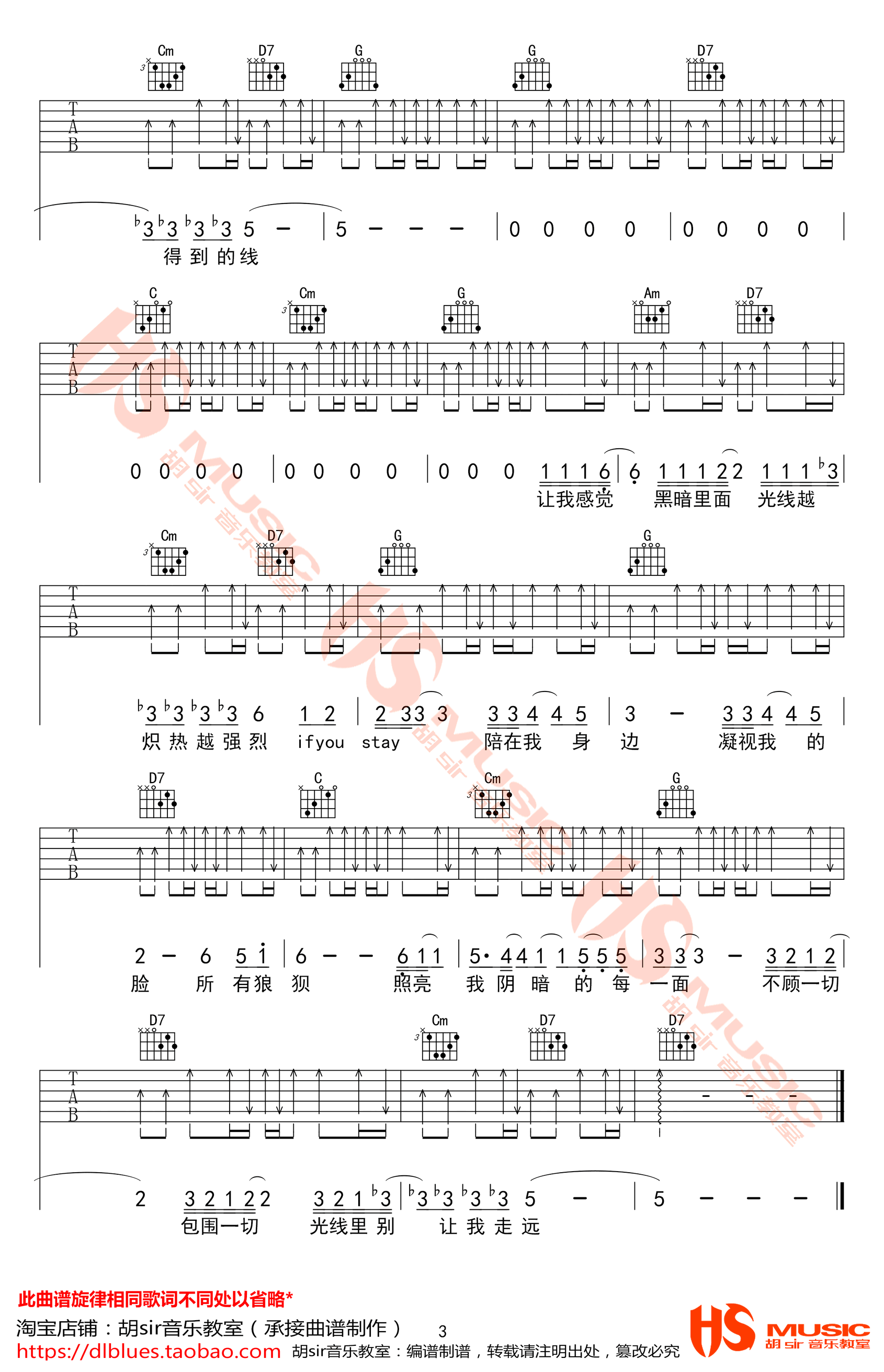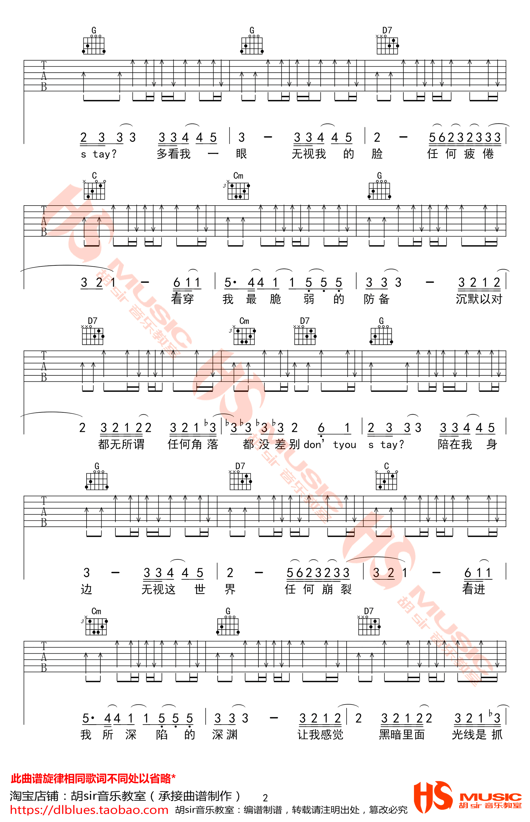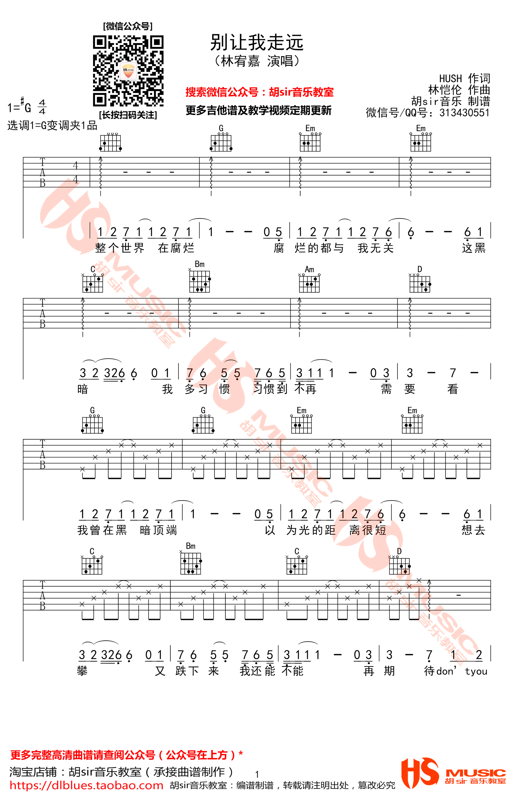 - 林宥嘉《全世界谁倾听你》吉他谱 G调弹唱谱 六线高清版