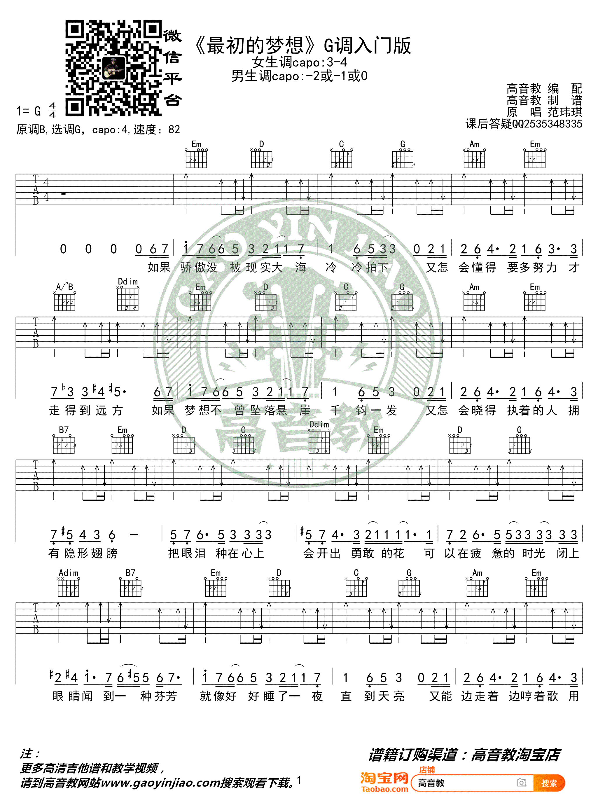 最初的梦想范玮琪吉他谱 易唱网最初的梦想吉他谱,范玮琪演唱,原调B,选调G,CAPO夹四品。最初的梦想六线谱,高清图片谱,高音教入门版编配,易唱网整理分享。