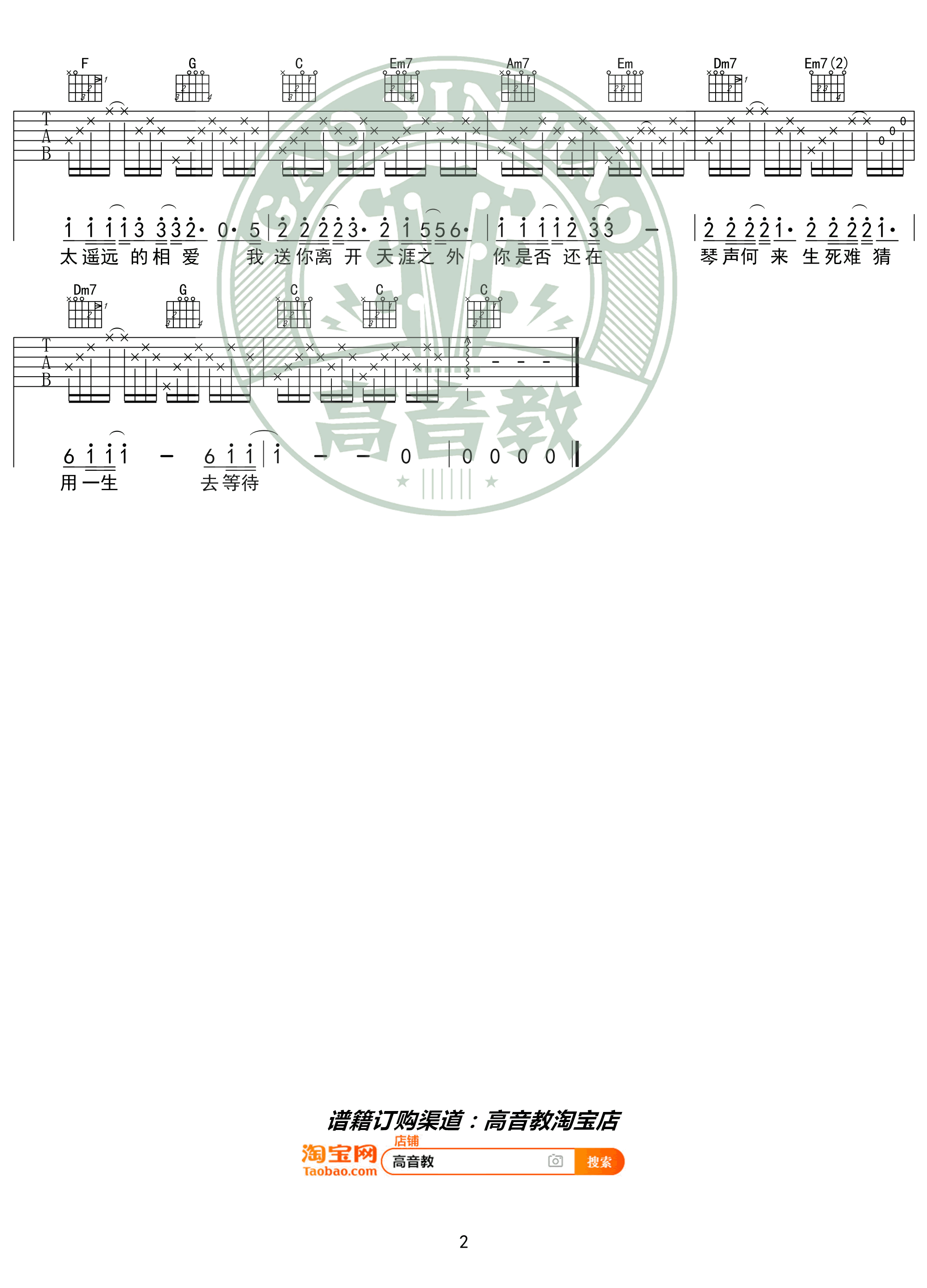 - 浮白吉他谱 花粥&胜娚 C调六线谱 高清弹唱谱