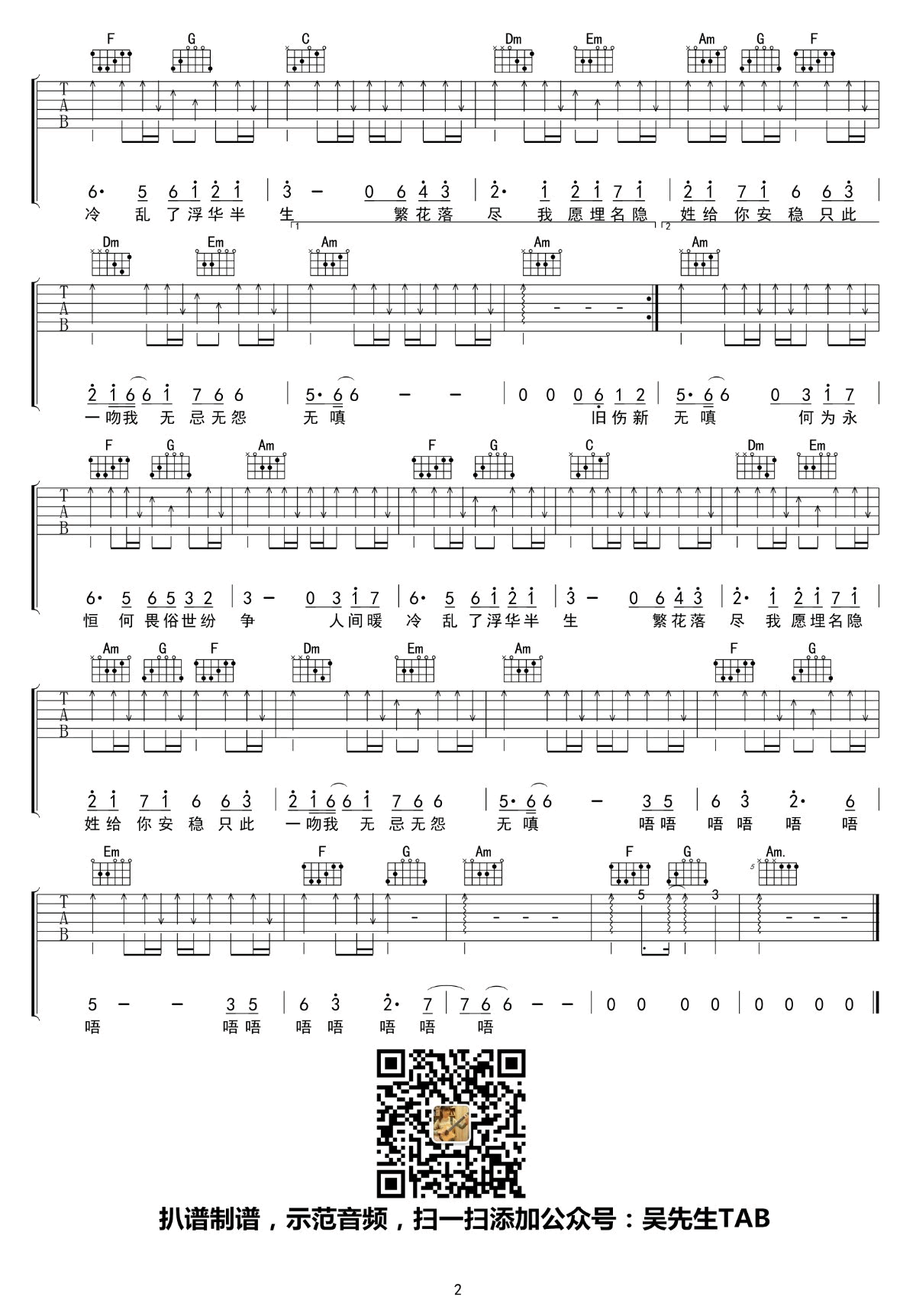 - 浮白吉他谱 花粥&胜娚 C调六线谱 高清弹唱谱