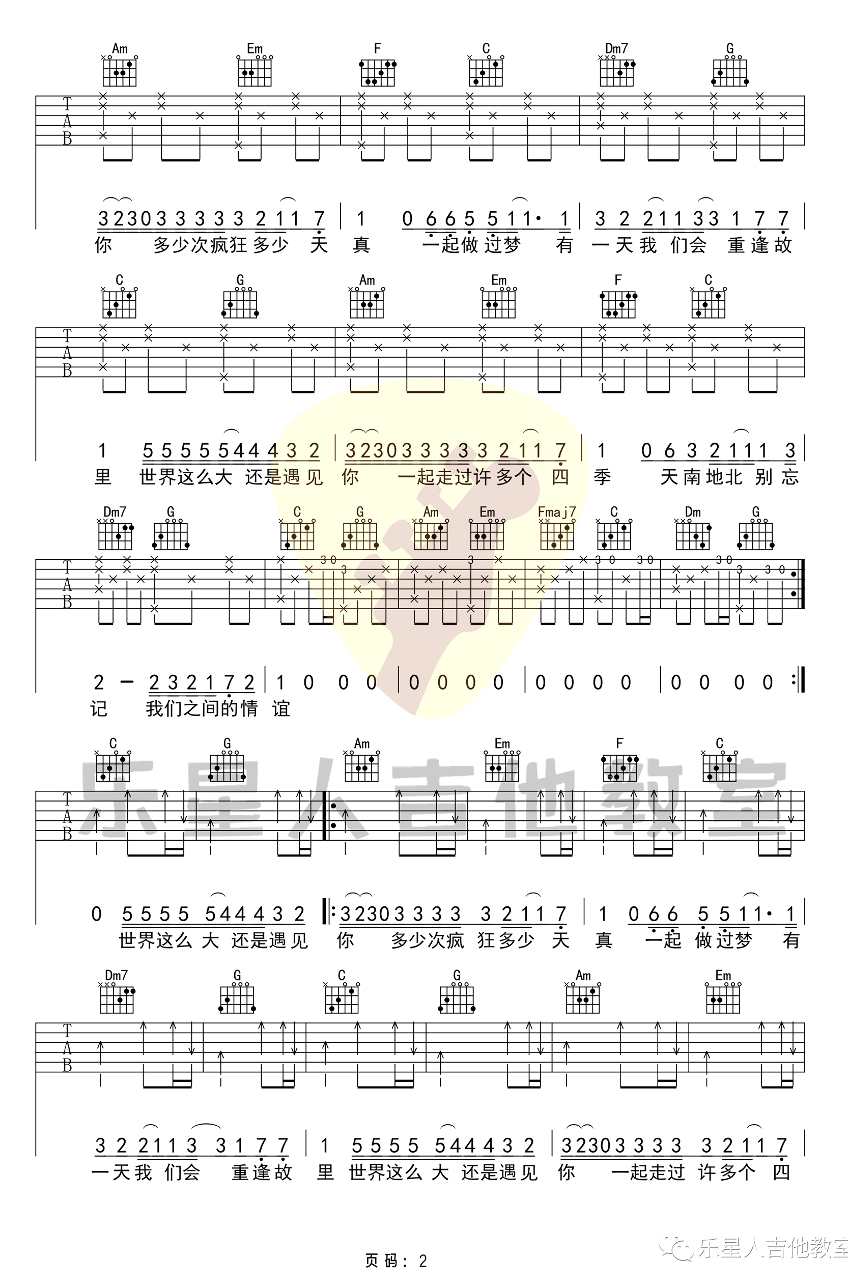 - 世界这么大还是遇见你吉他谱_清新的小女孩中文版_弹唱
