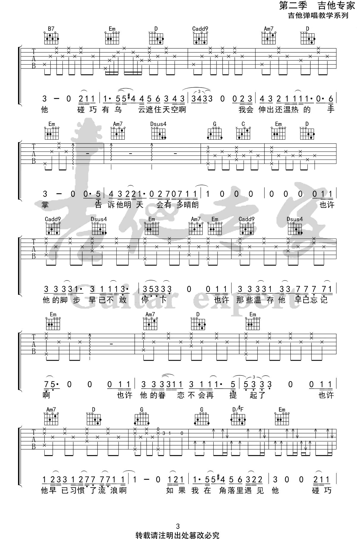 - 刚好遇见你吉他谱_李玉刚_原版吉他谱+演奏视频