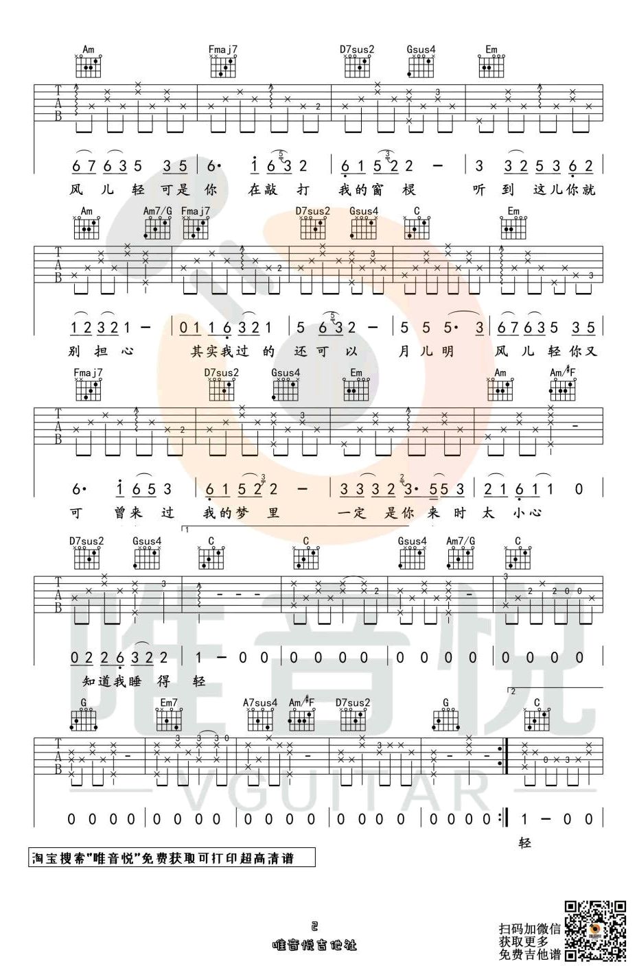 - 岁岁平安吉他谱_李宇春肖战_C调原版_弹唱谱