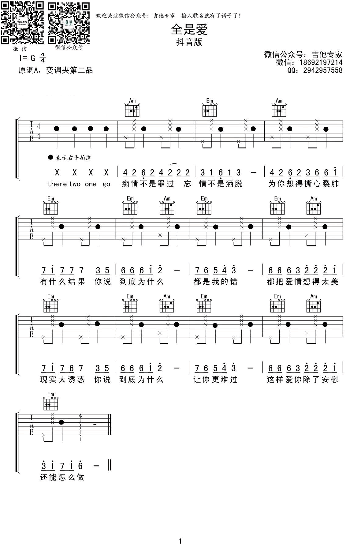 - 全是爱吉他谱_要不要买菜_抖音版本_G调弹唱谱