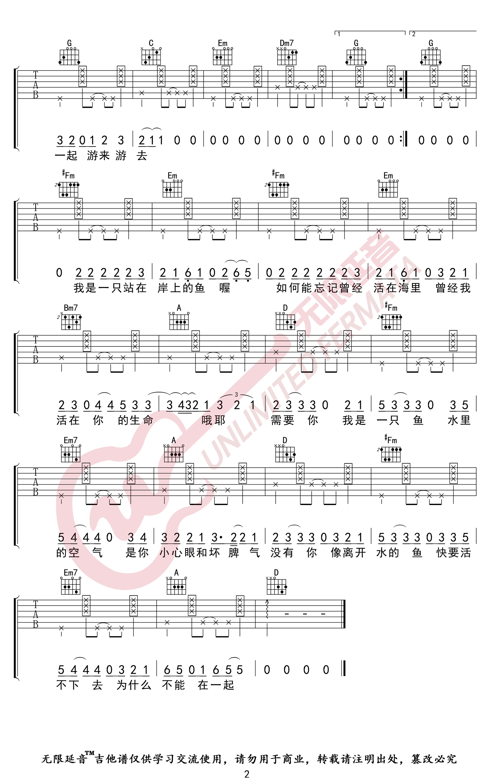 - 我是一只鱼吉他谱_落日飞车/任贤齐_C调弹唱谱