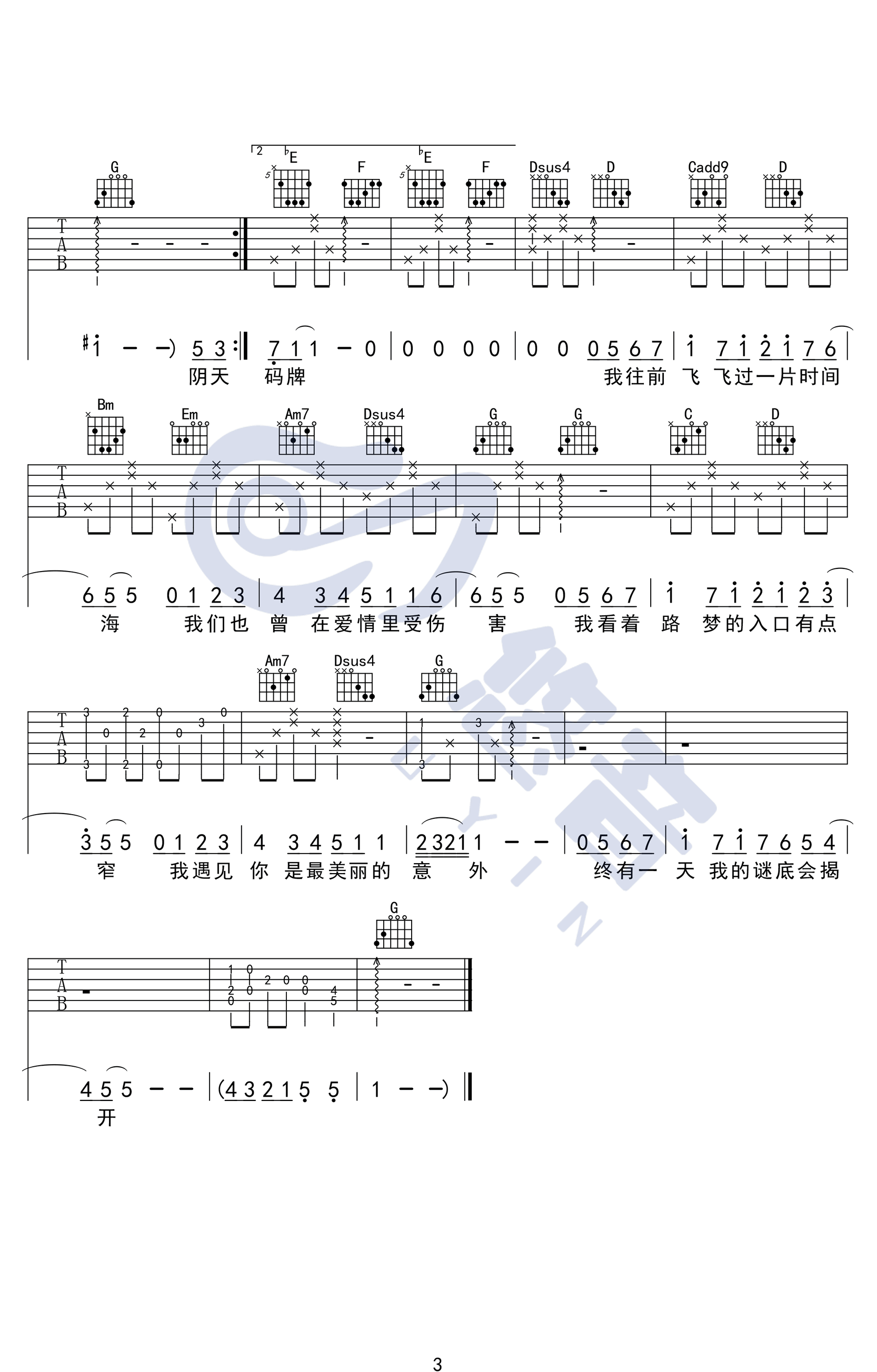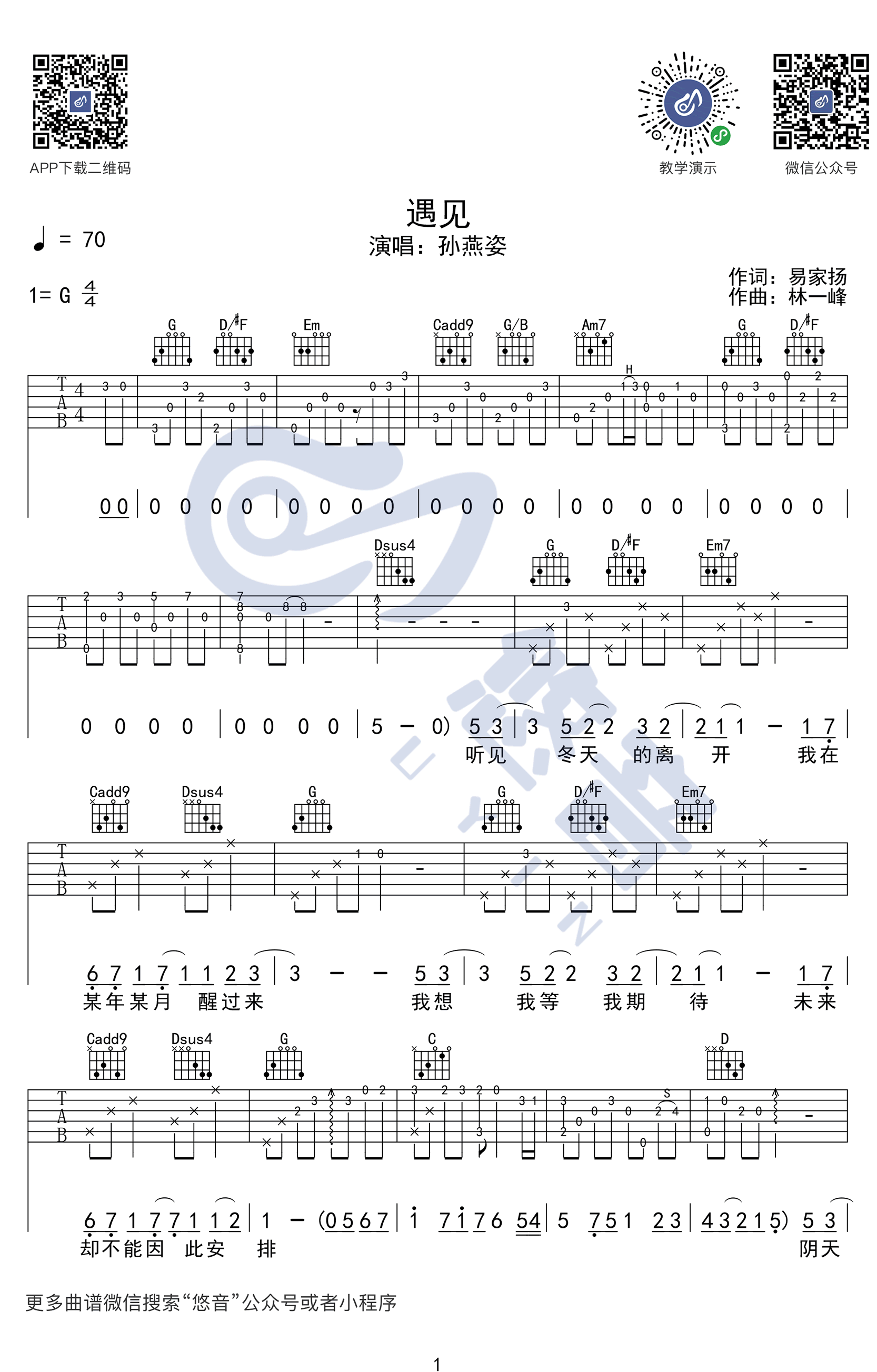 - 遇见吉他谱_孙燕姿_G调_吉他弹唱示范视频