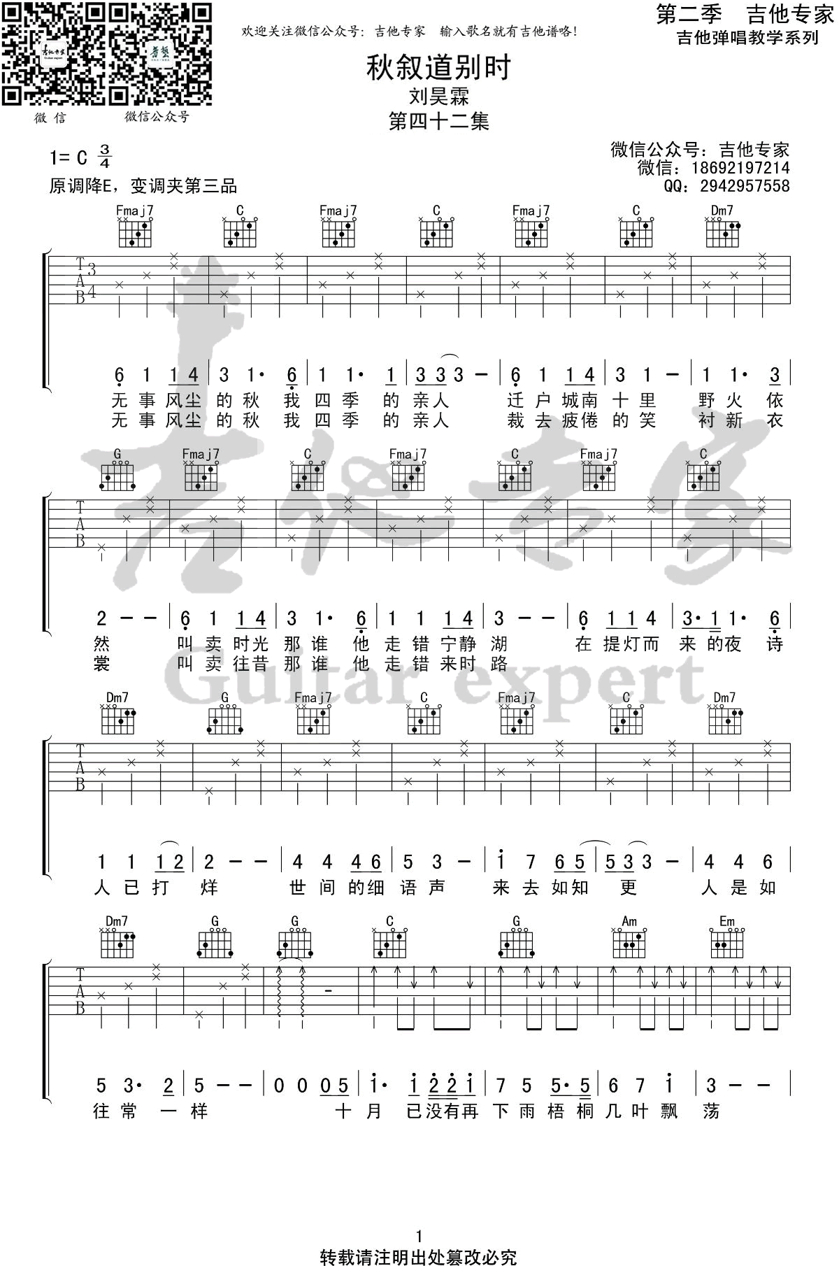 - 秋叙道别时吉他谱_刘昊霖_C调_弹唱六线谱