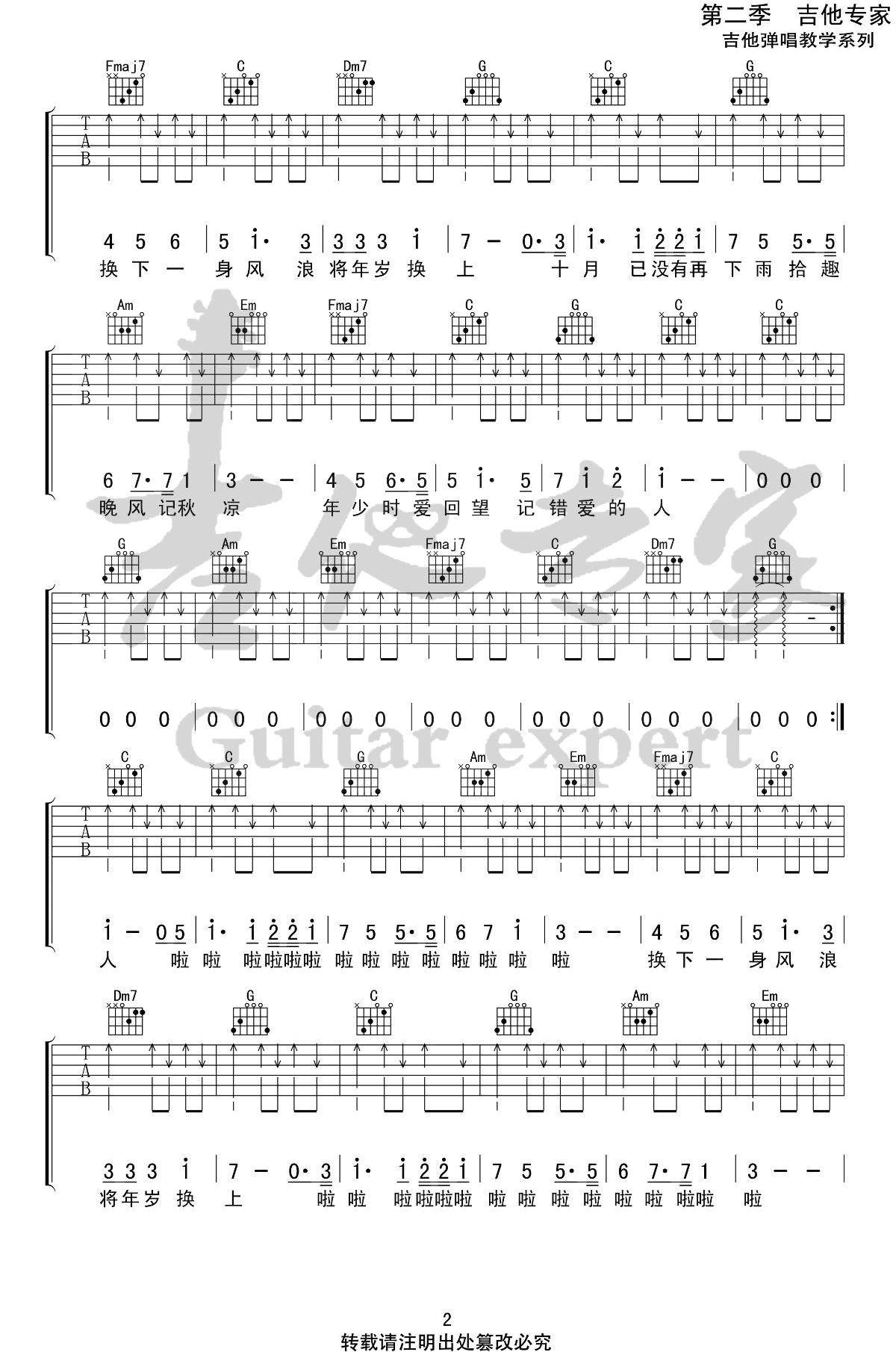- 把爱散落在人间吉他谱_隔壁老樊_C调弹唱谱_完整版