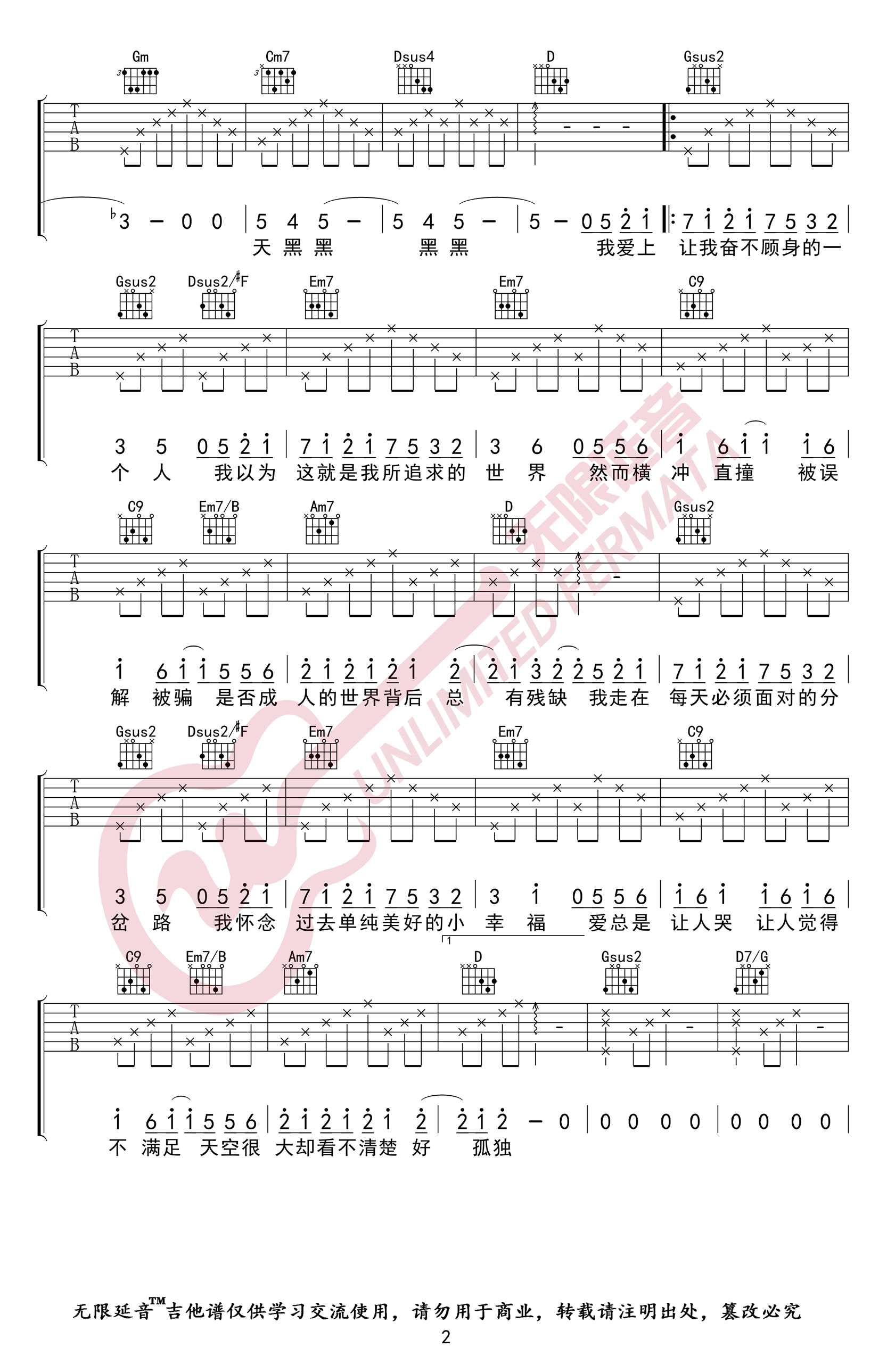 - 天黑黑吉他谱_孙燕姿_G调六线谱_高清版