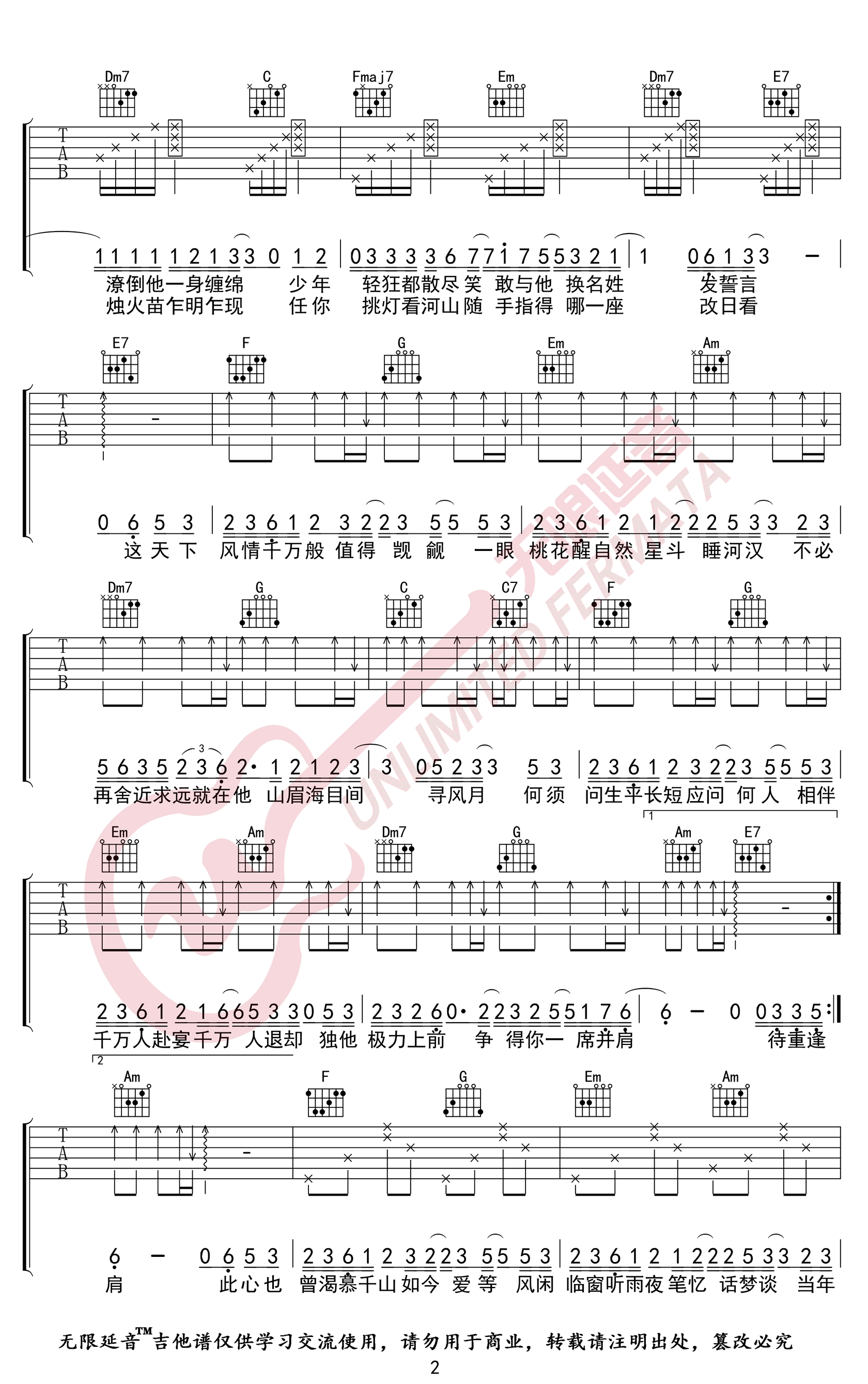 - 少年吉他谱_梦然_C调指法_弹唱六线谱_高清版