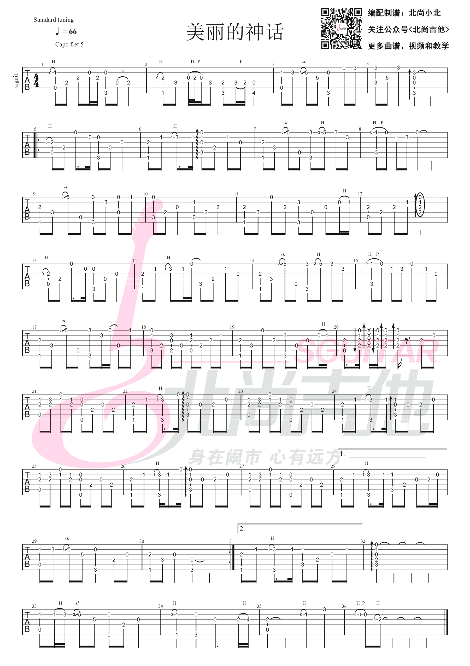 - 美丽的神话指弹谱_电影《神话》主题曲_C调_教学视频