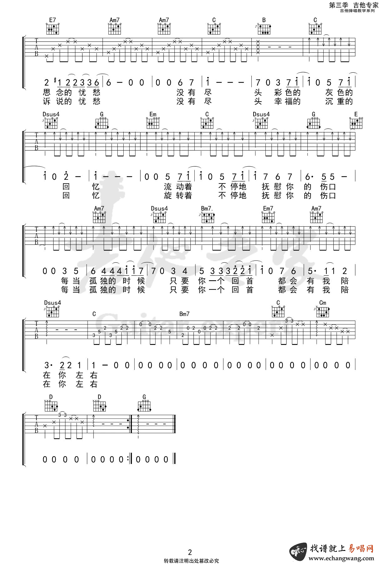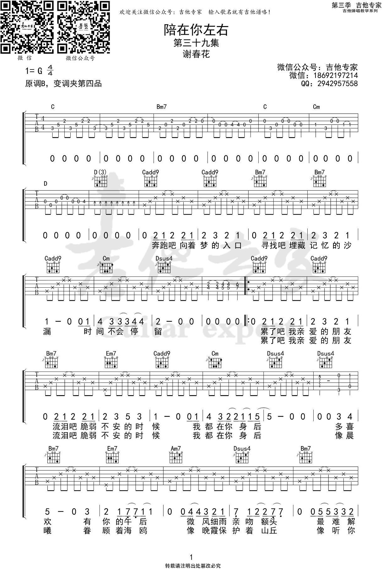 - 陪在你左右吉他谱_谢春花_《五六七》第三季片尾曲_G调弹唱谱