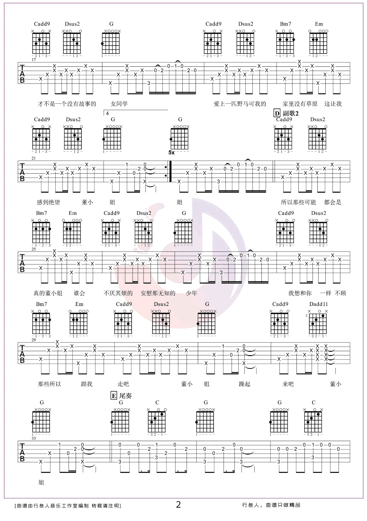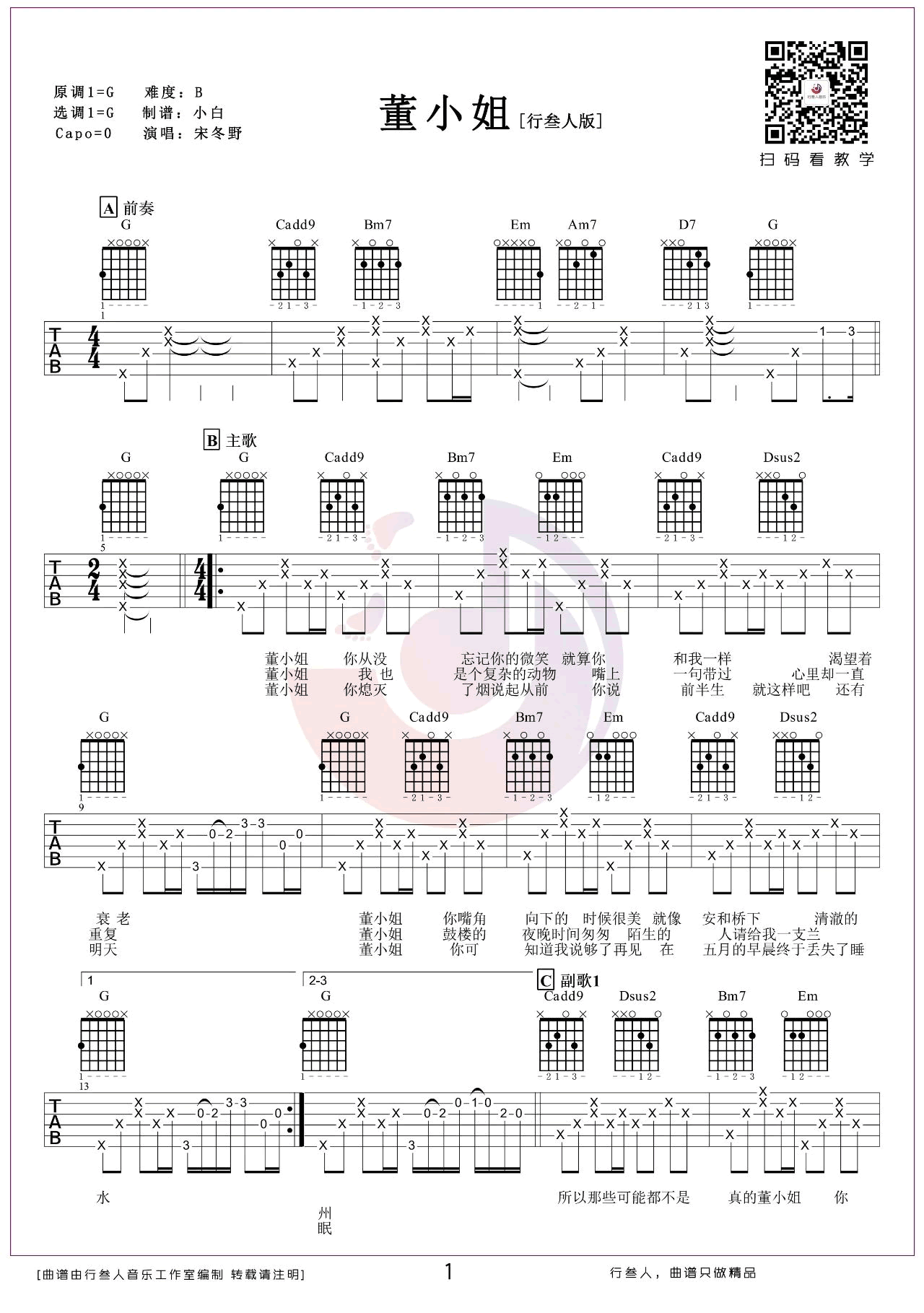 - 董小姐吉他谱_宋冬野_G调原版_吉他弹唱演示