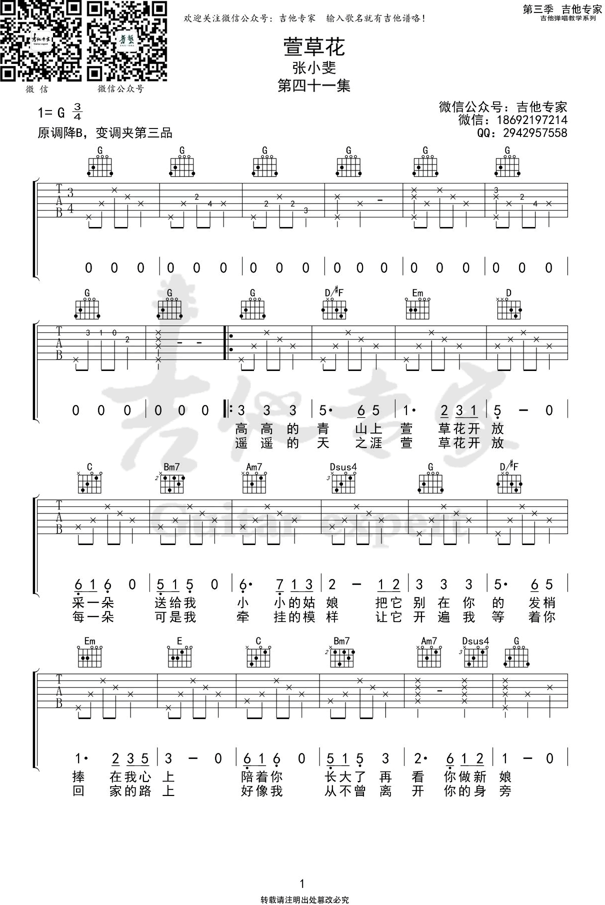 - 萱草花吉他谱_张小斐《你好李焕英》插曲_弹唱演示视频