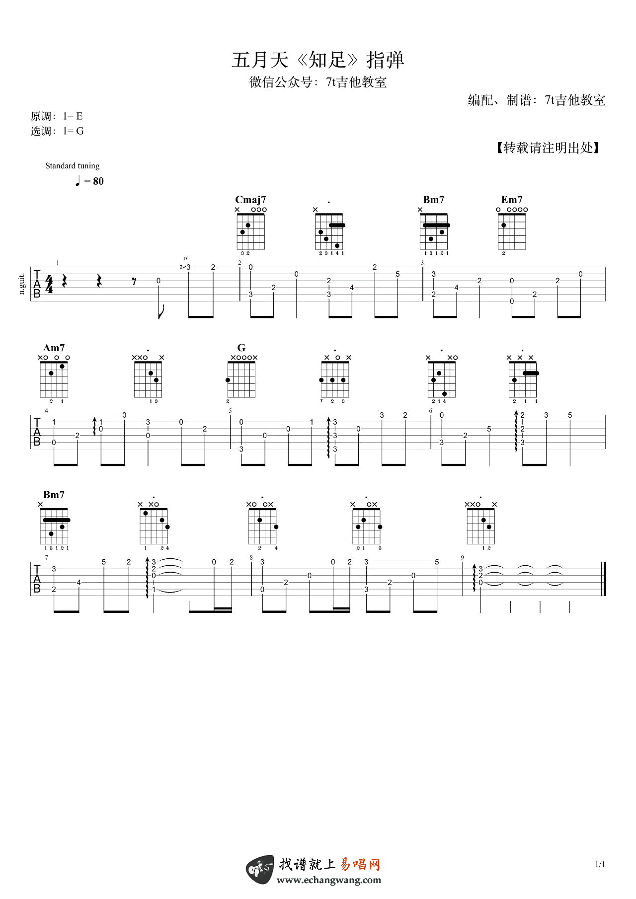 - 知足指弹谱_五月天_吉他独奏谱_吉他演示教学
