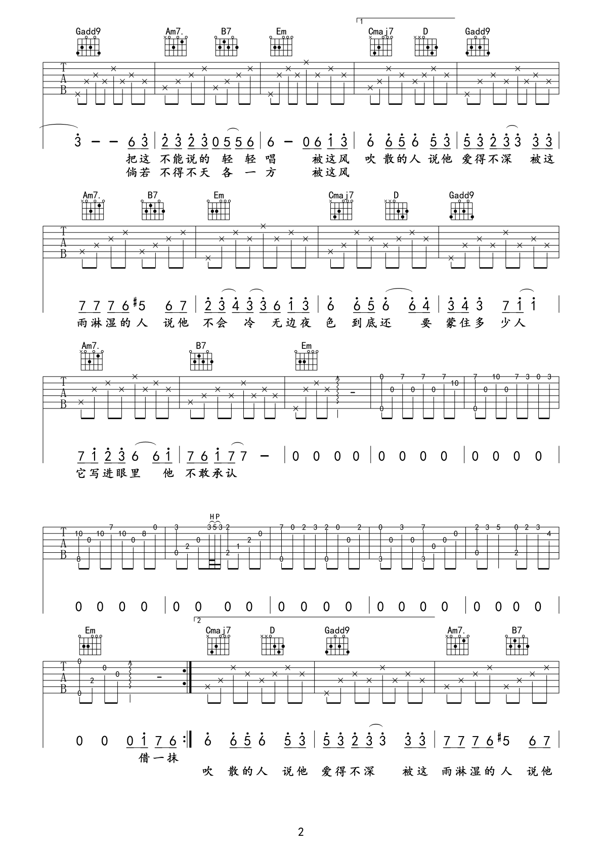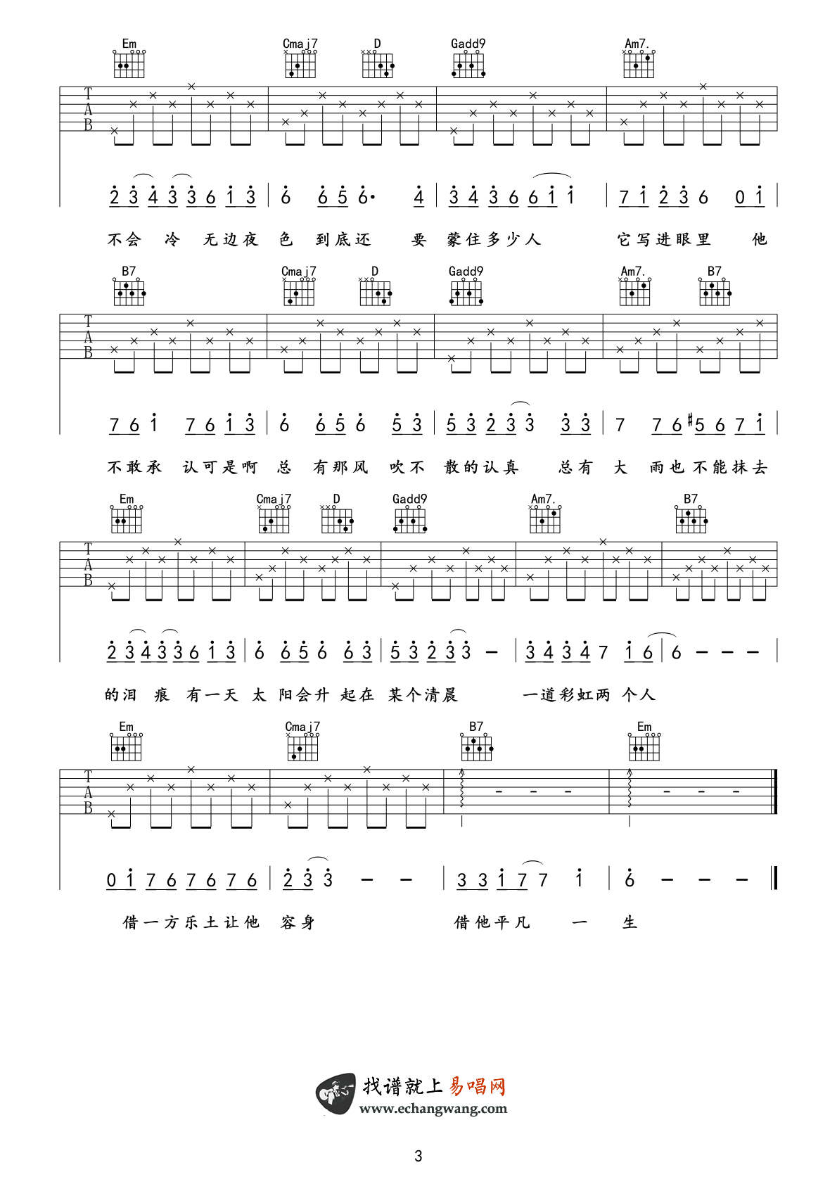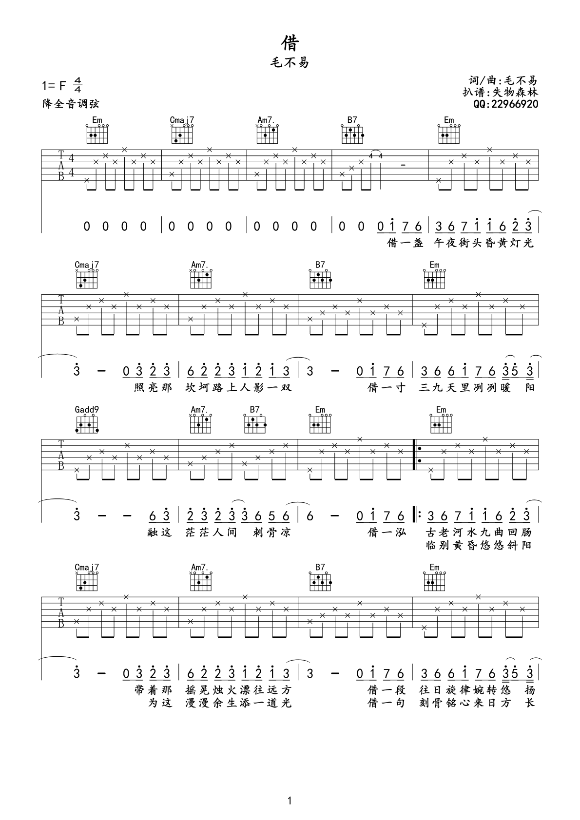 - 毛不易《借》吉他谱_G调指法_弹唱六线谱