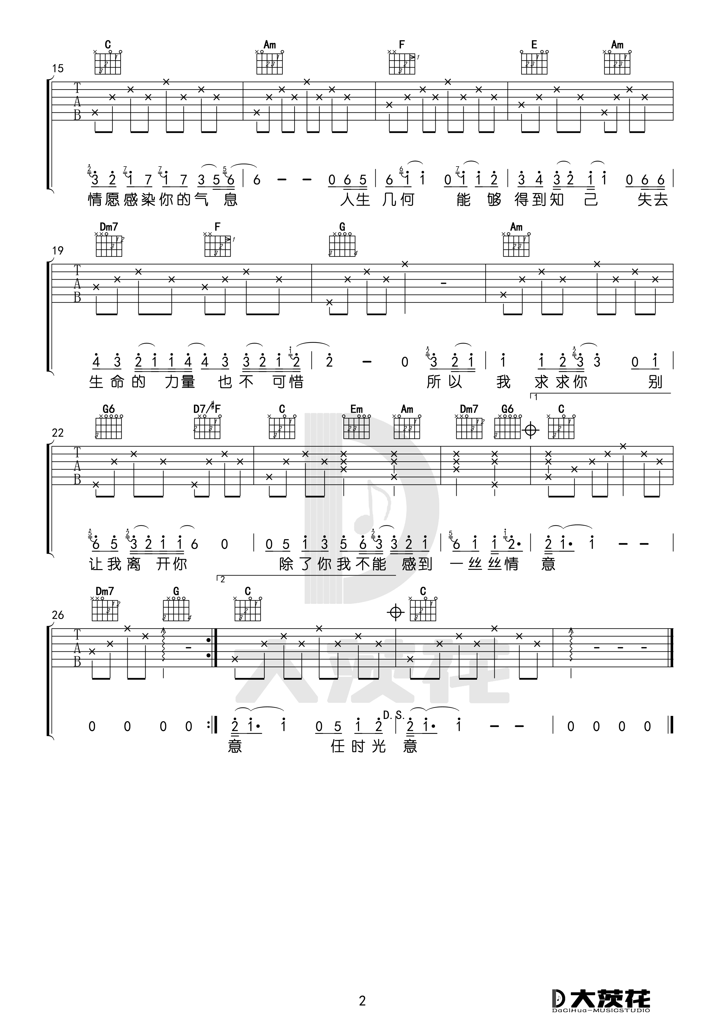 - 渐冷吉他谱_雪二《渐冷》C调弹唱_原版六线谱