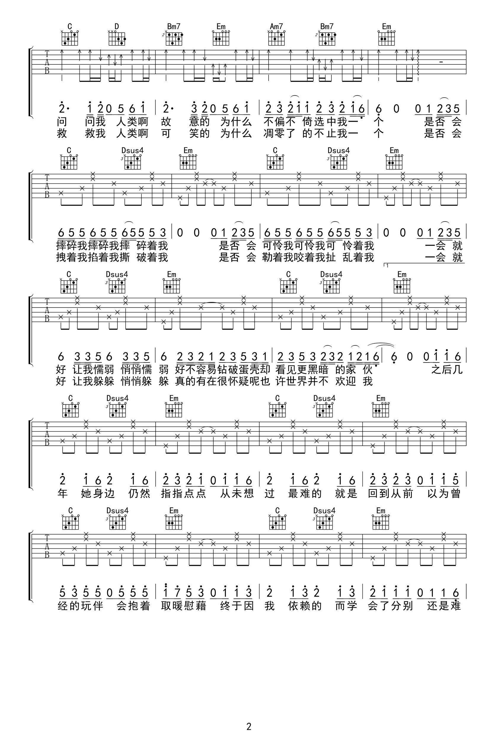 - 负重一万斤长大吉他谱_太一_G调指法_弹唱六线谱