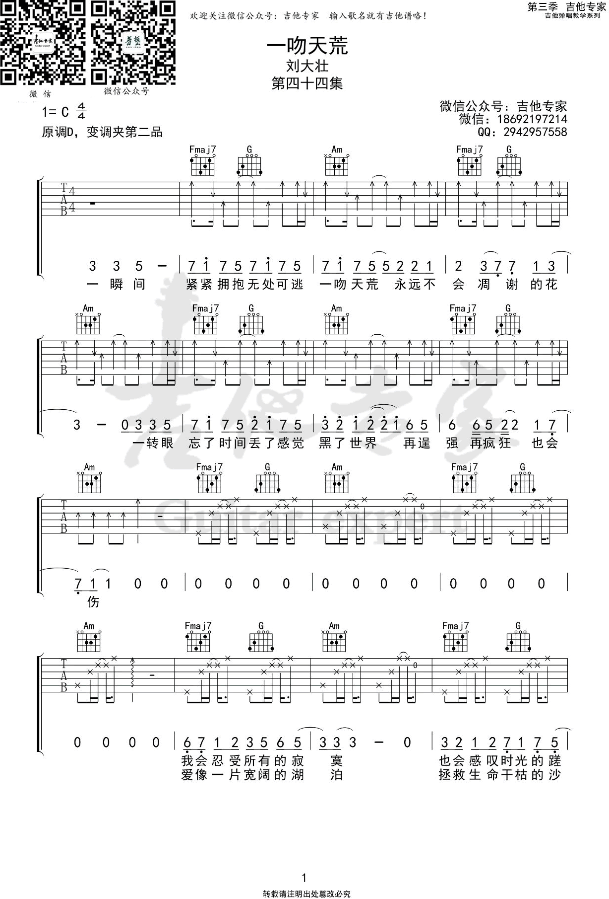- 一吻天荒吉他谱_刘大壮_C调弹唱谱_好听的吉他版本