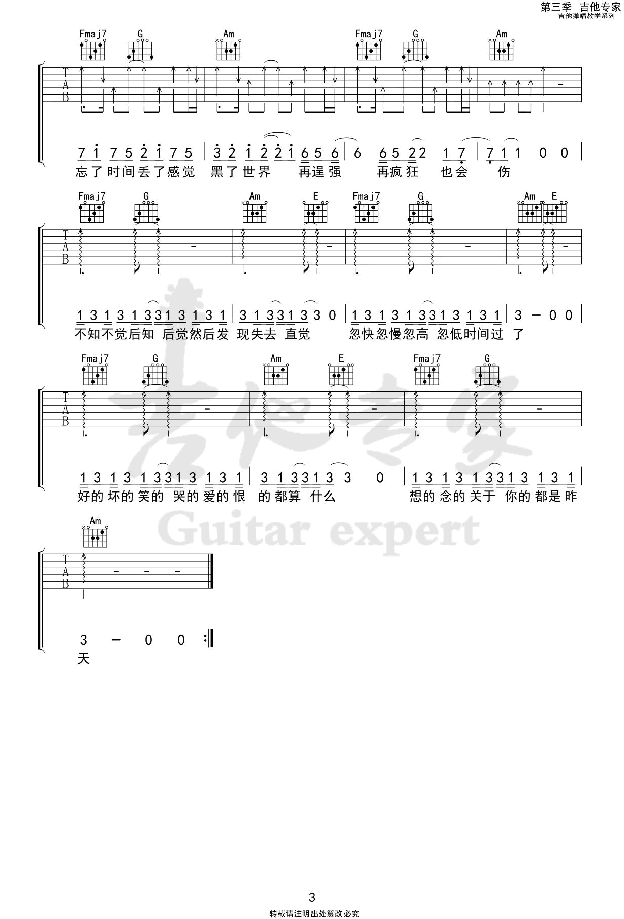 - 渐冷吉他谱_雪二《渐冷》C调弹唱_原版六线谱