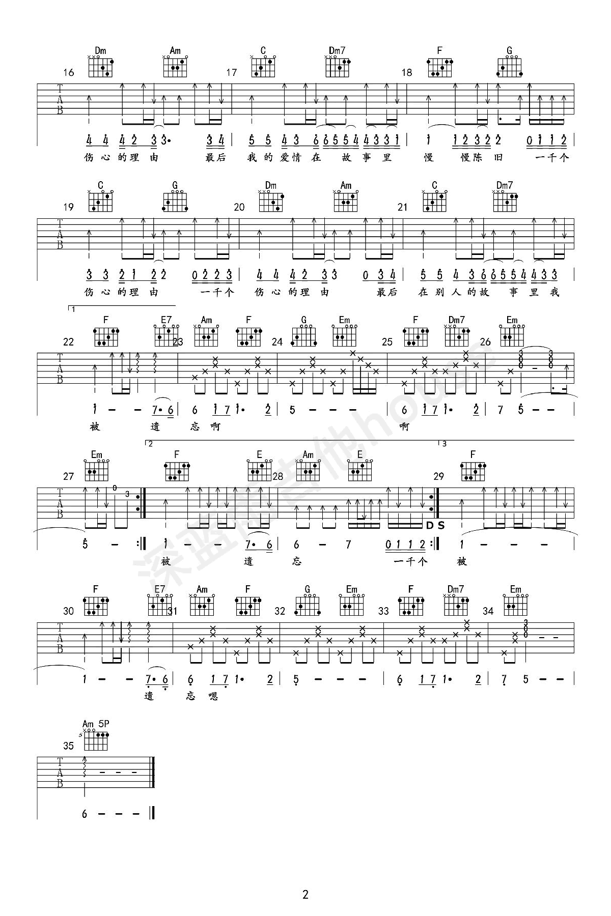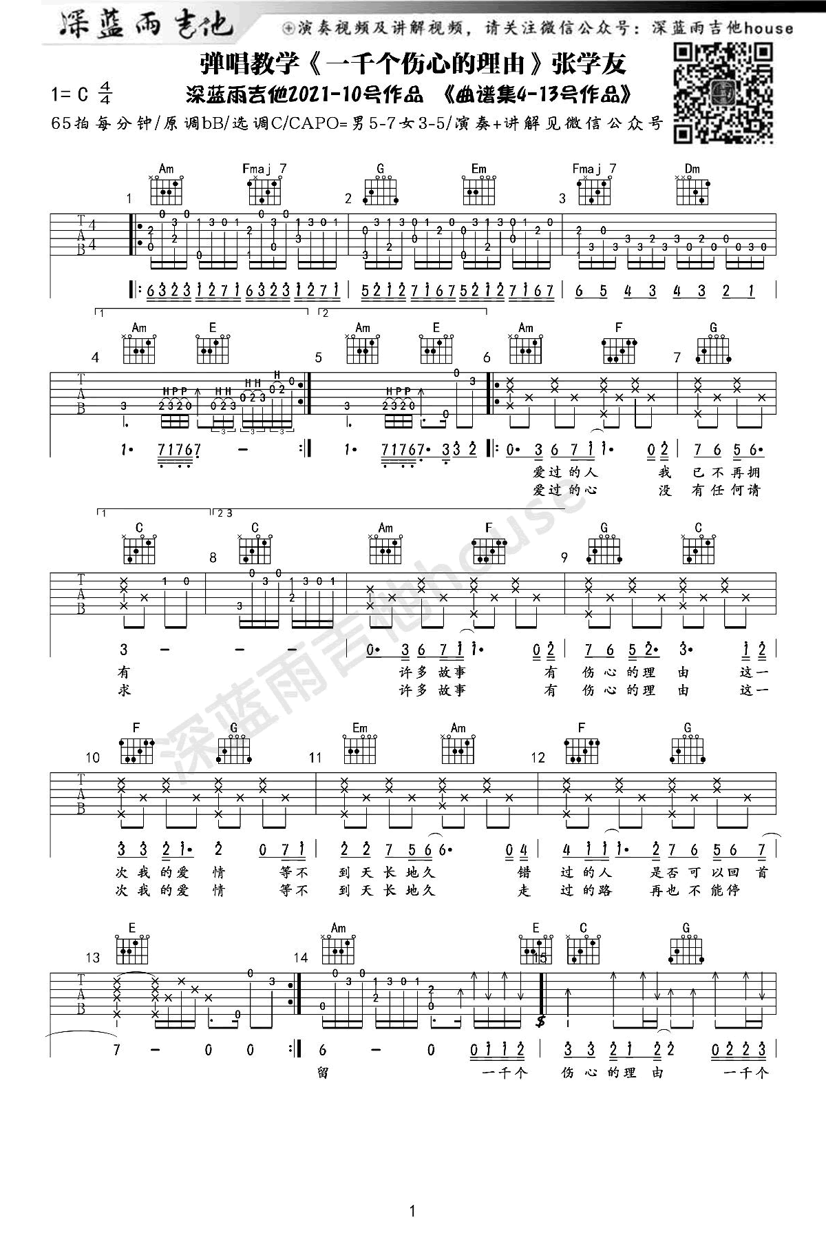 - 一千个伤心的理由吉他谱_张学友_高清图片谱