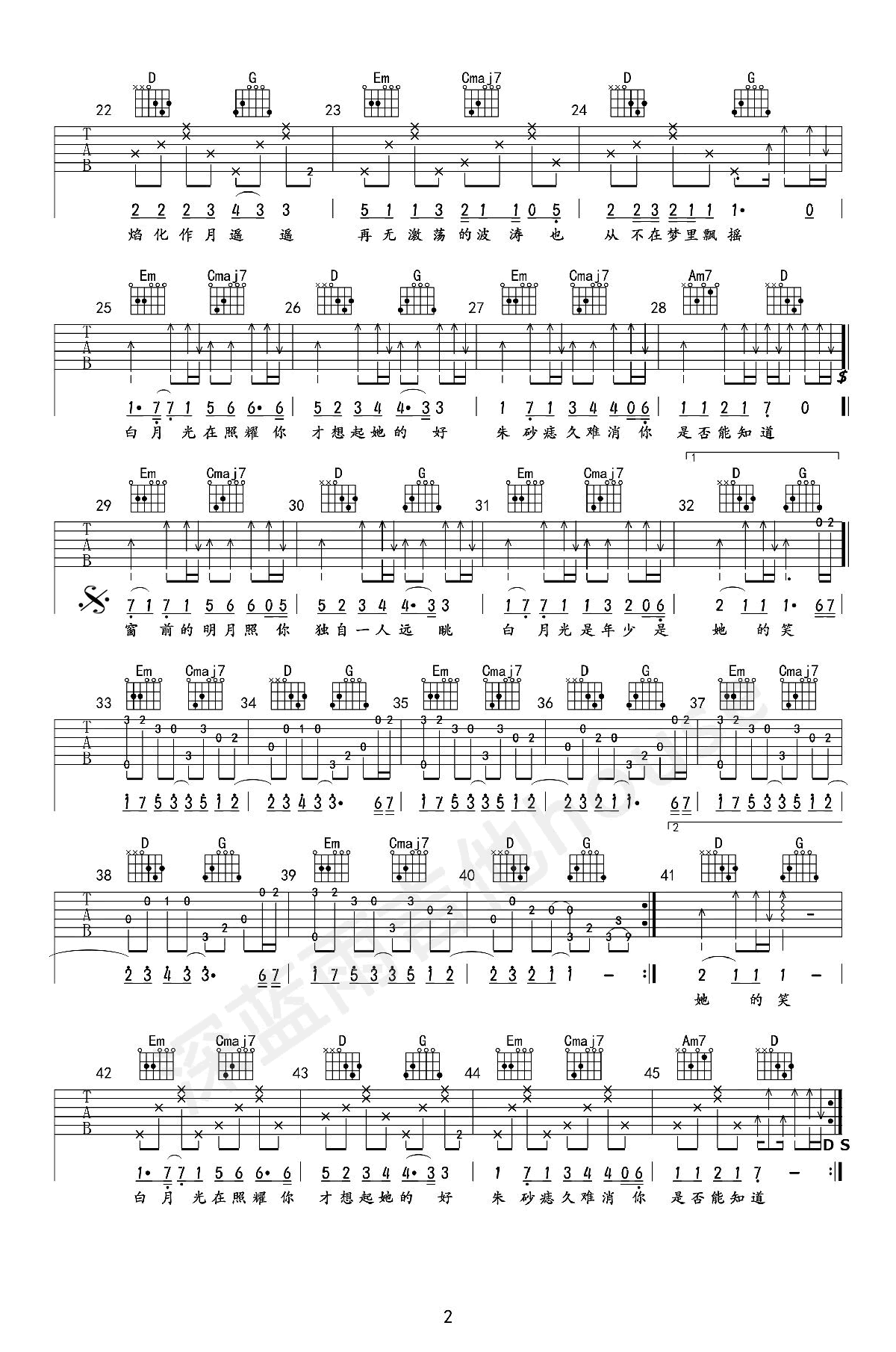 - 白月光与朱砂痣吉他谱_大籽_G调原版_弹唱六线谱