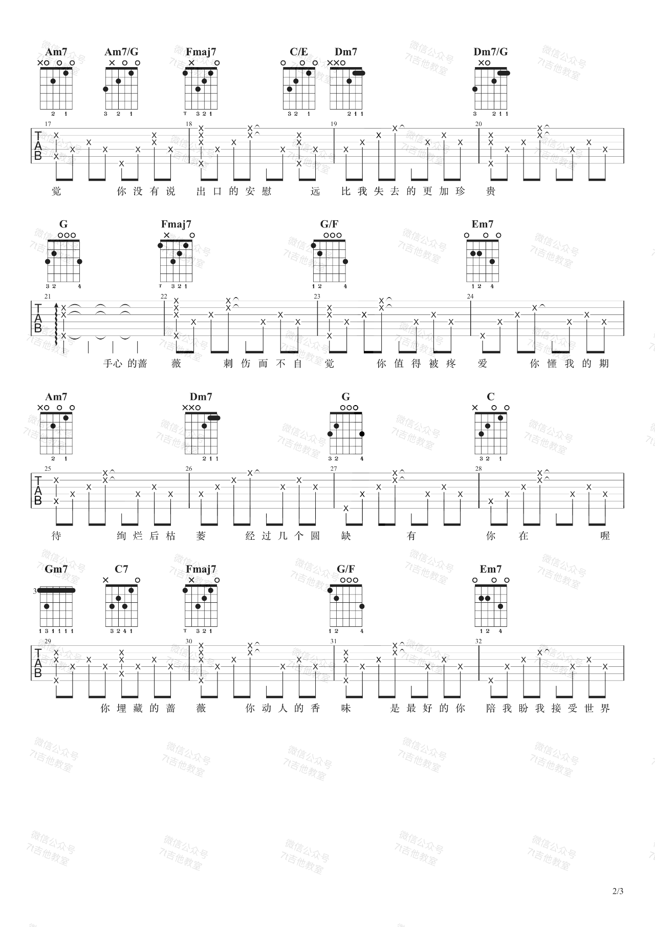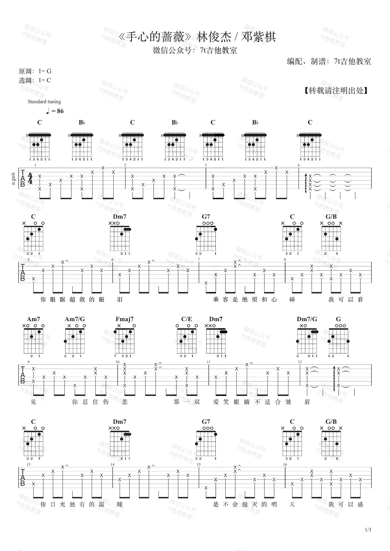 - 手心的蔷薇吉他谱_林俊杰/邓紫棋_C调_弹唱演示视频