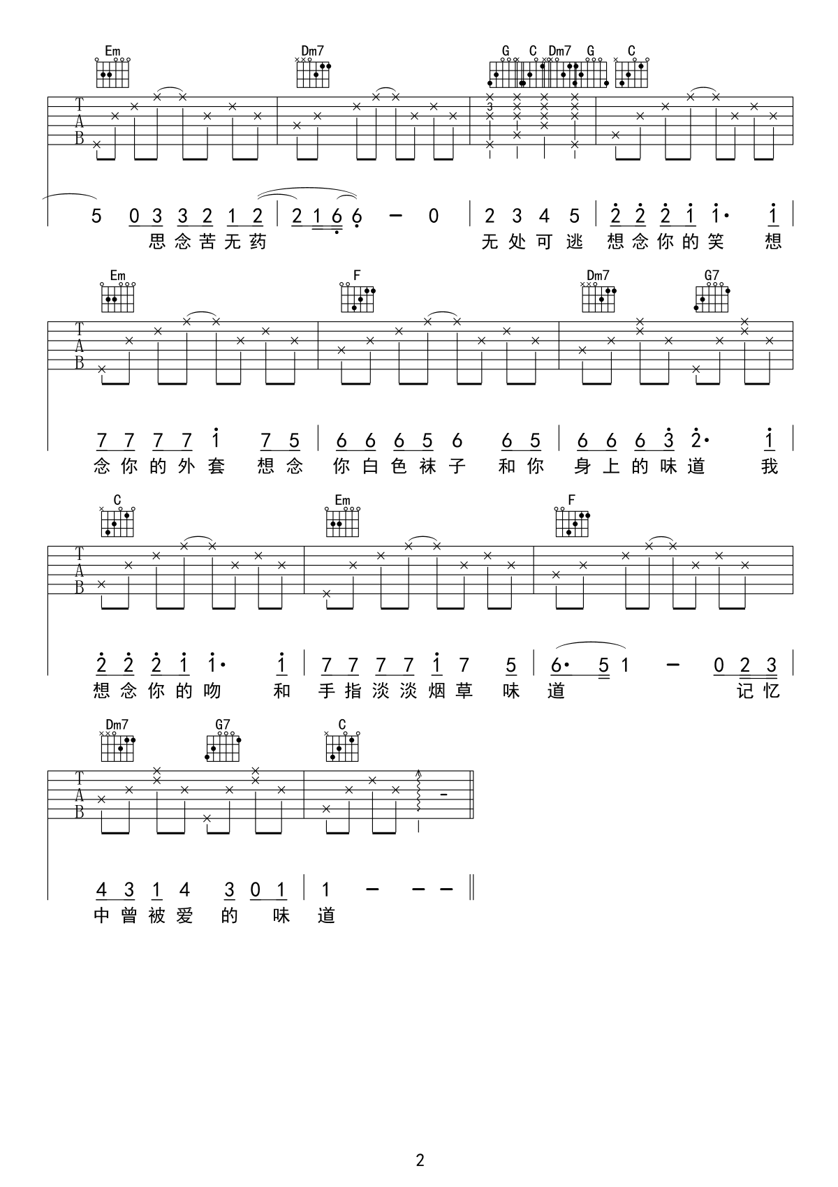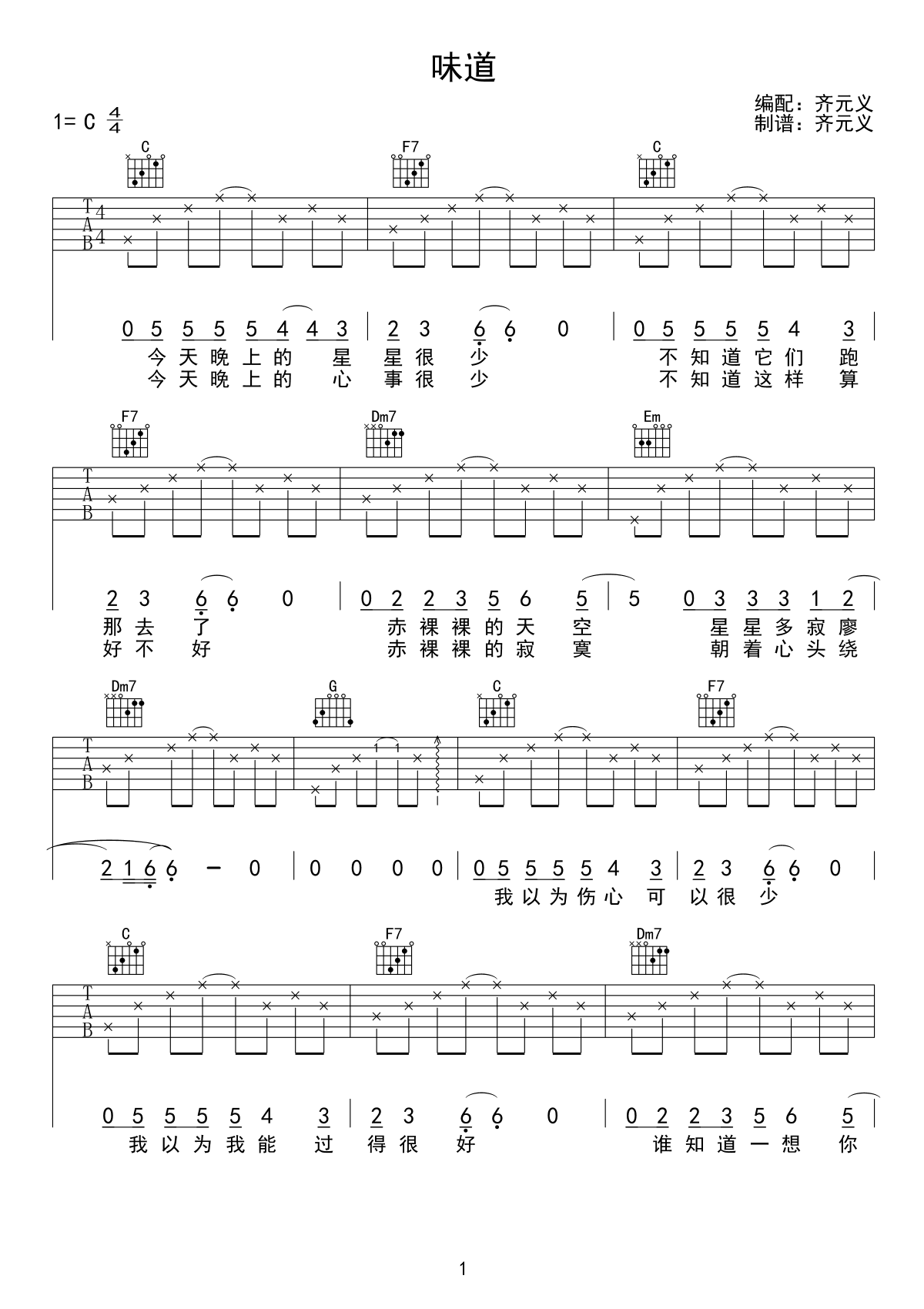 - 味道吉他谱_辛晓琪_C调简单版_弹唱六线谱