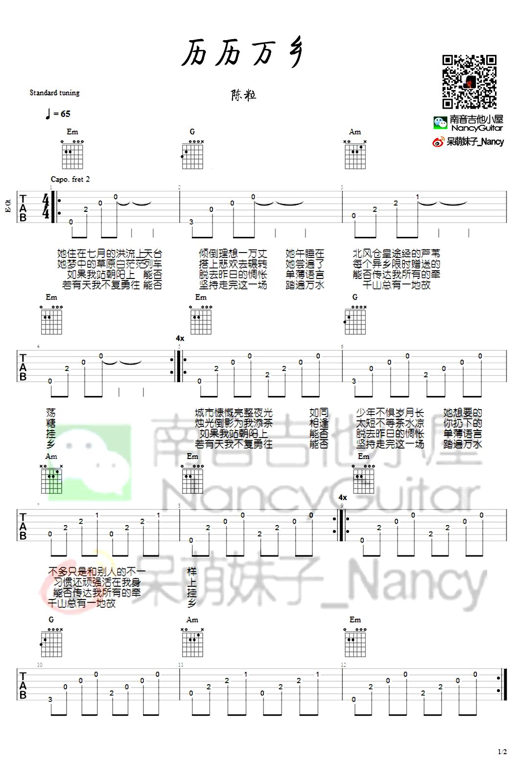 - 历历万乡吉他谱 陈粒 弹唱谱六线谱 G调版高清版
