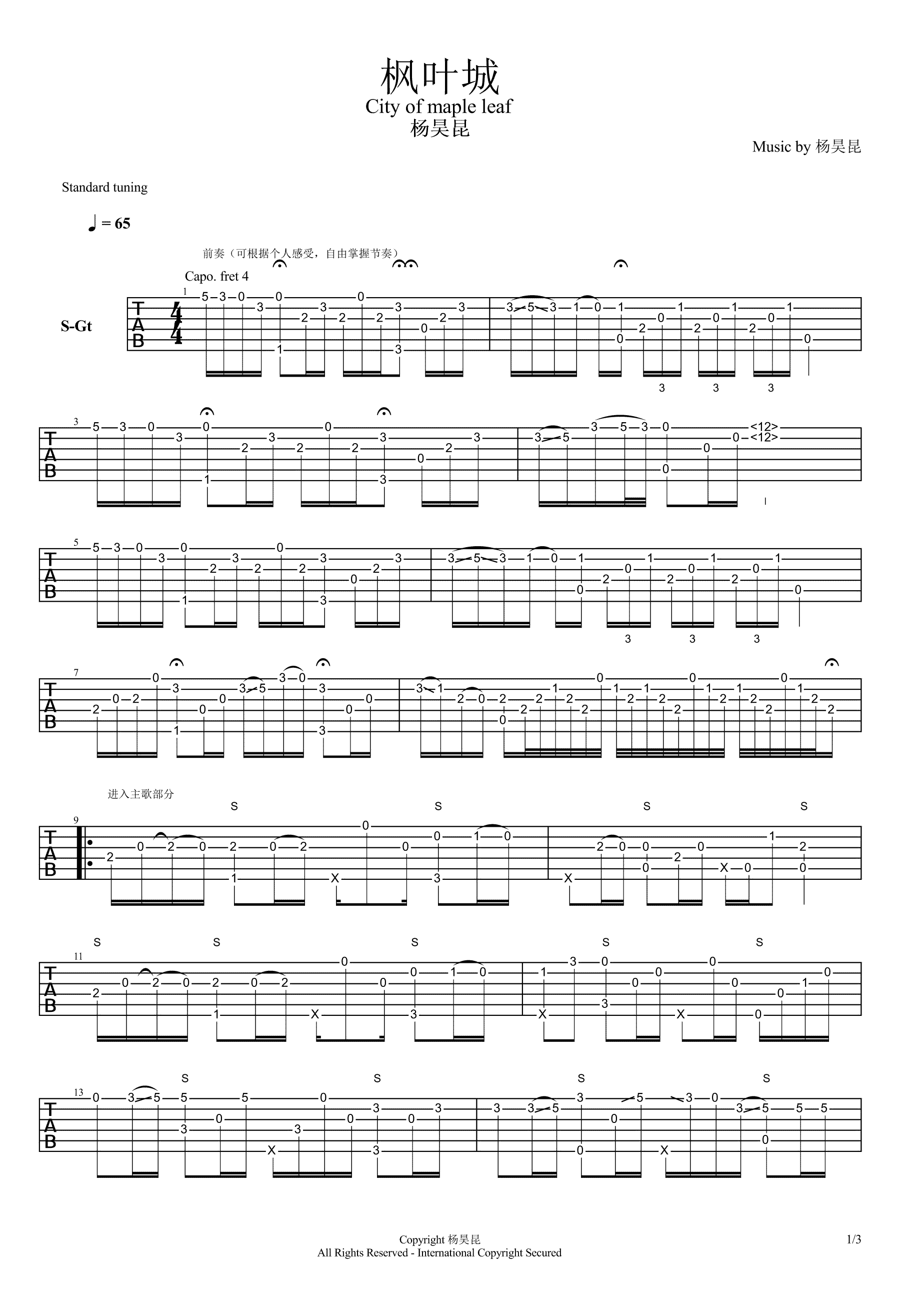 杨昊昆《枫叶城 》 吉他演奏的指弹纯音乐 纯音乐 无歌词