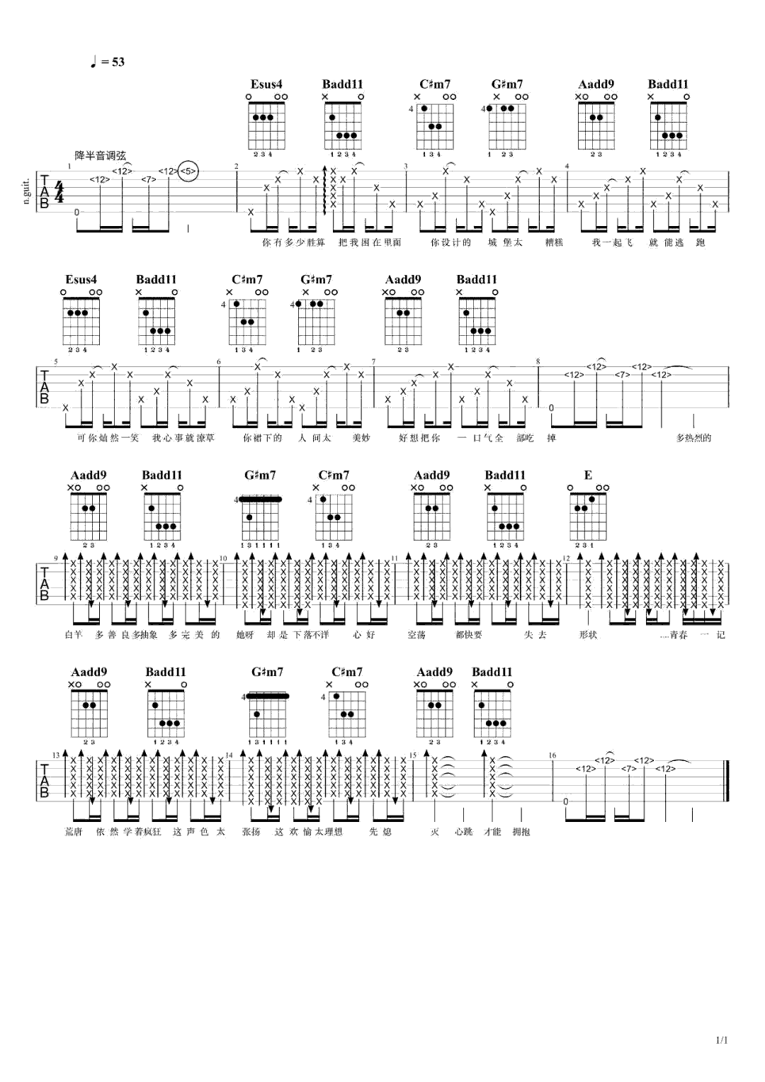 - 123我爱你吉他谱 新乐尘符 图片谱 吉他弹唱教学