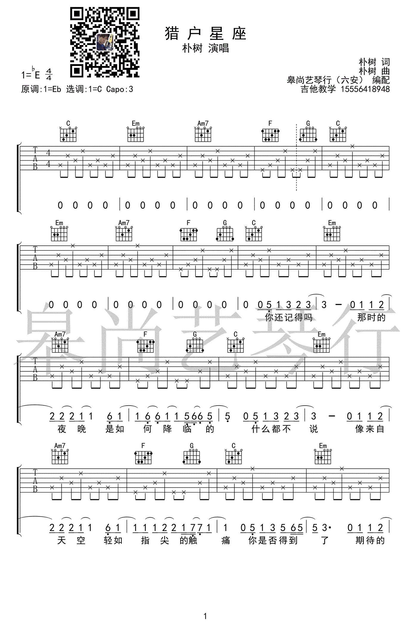 - 清白之年吉他谱 朴树 六线谱弹唱谱 演示视频