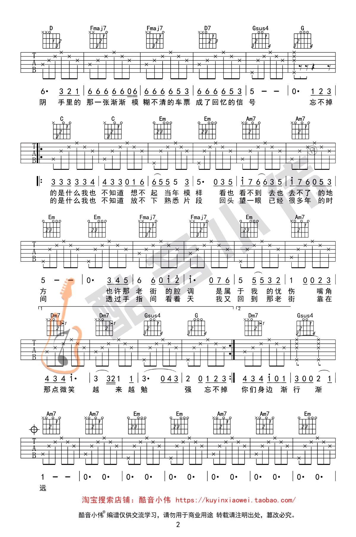 - 老街吉他谱 李荣浩 C调六线谱 吉他弹唱演示+教学视频
