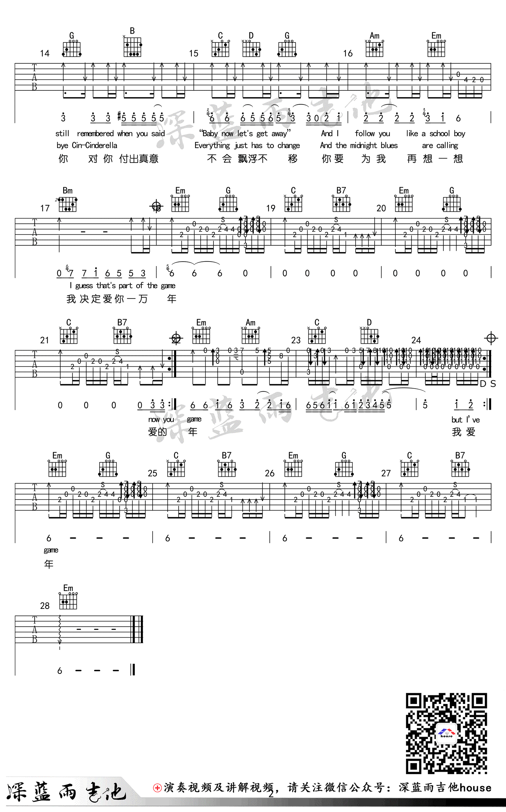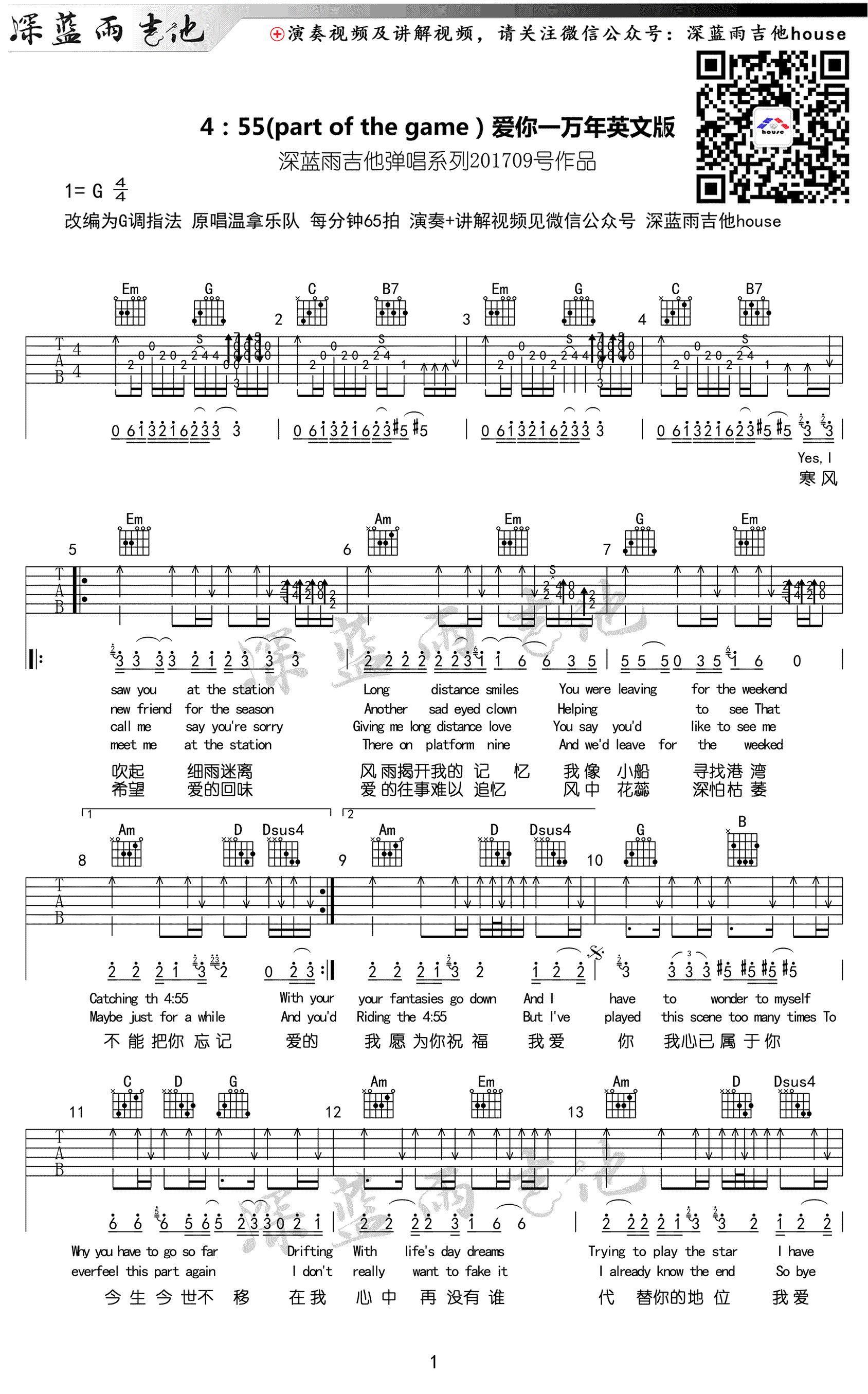 4:55(Part of the game)吉他谱,香港温拿乐队演唱,韩宝仪经典老歌《爱你一万年》英文版,选用G调指法,高清弹唱图片谱。,曲谱和弹唱演示视频由深蓝雨吉他的编配提供,易唱网推荐分享。这首歌曲被许多歌手翻唱过,附上教学视频供琴友们参考和学习。