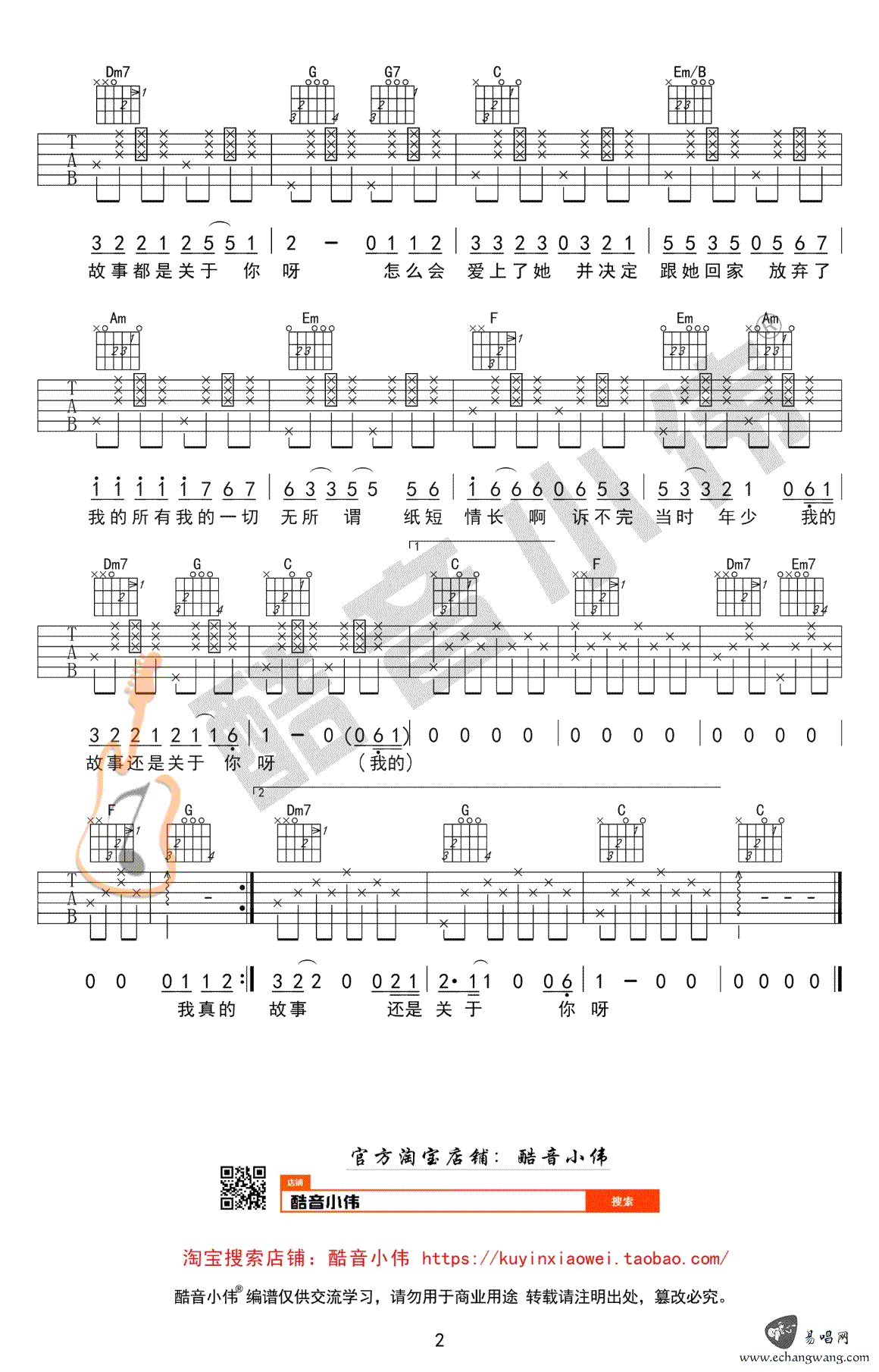 - 纸短情长吉他谱 C调版本 烟把儿乐队《纸短情长》弹唱六线谱