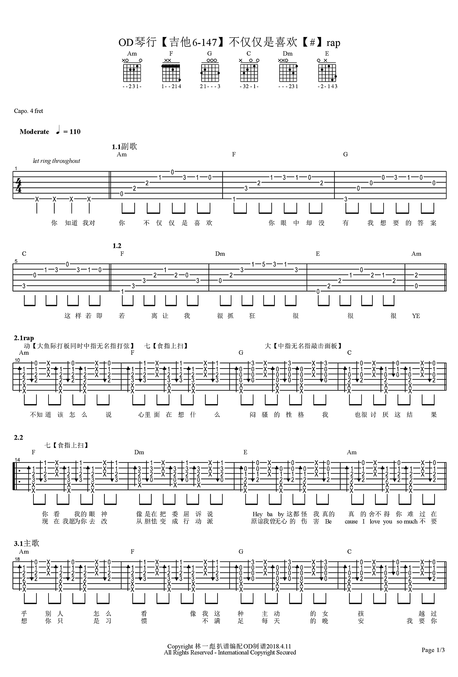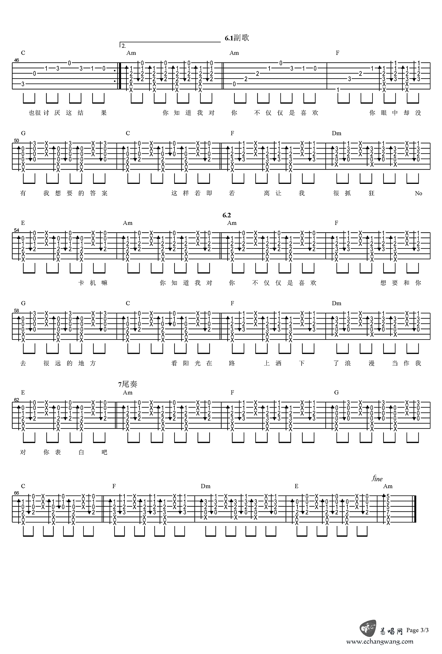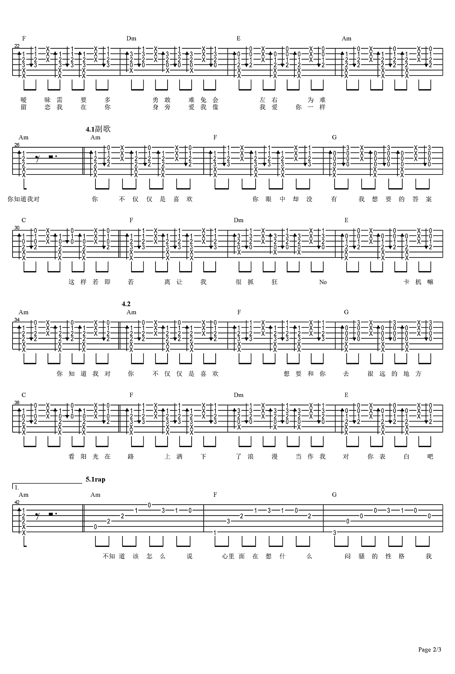 - 123我爱你吉他谱 新乐尘符 图片谱 吉他弹唱教学
