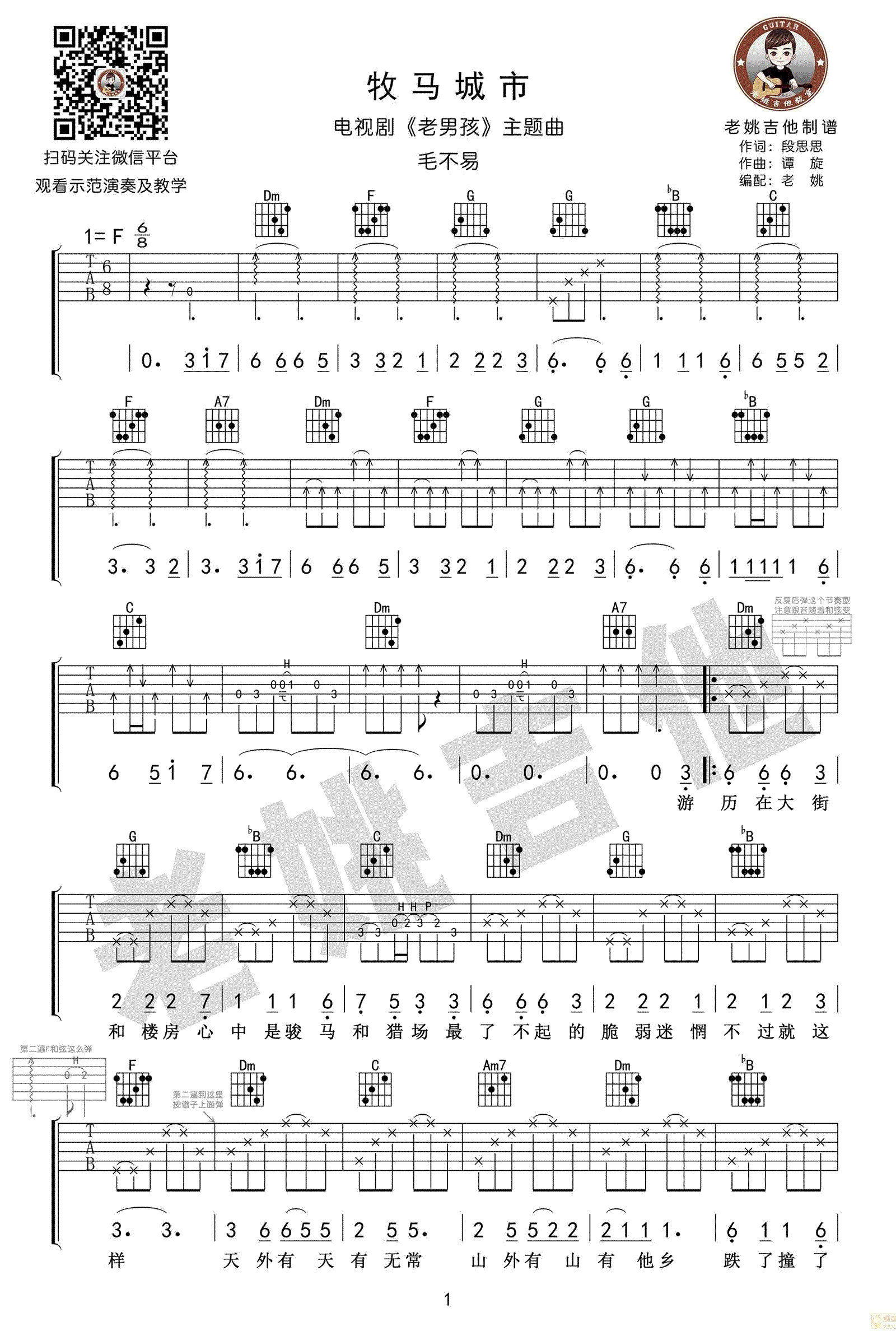 - 牧马城市吉他谱 毛不易 C调弹唱谱 电视剧《老男孩》片尾曲