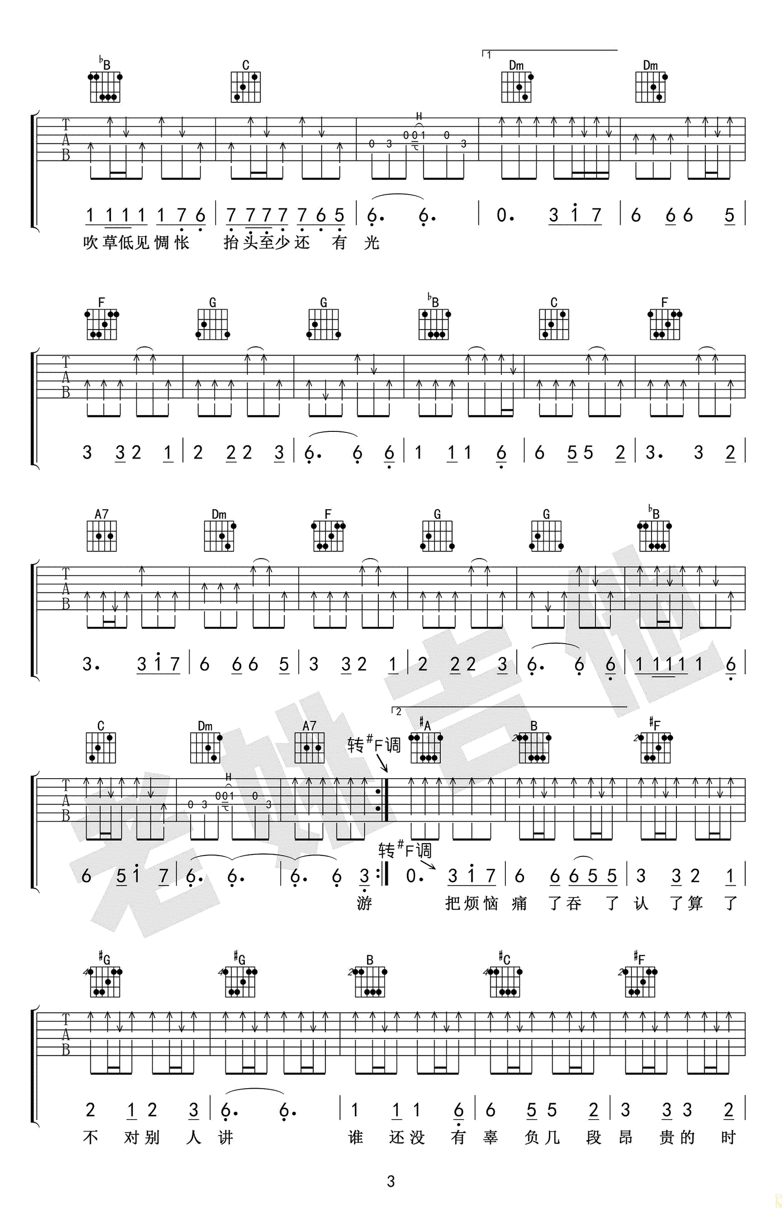 - 消愁吉他谱 毛不易 G调原版编配 高清六线谱