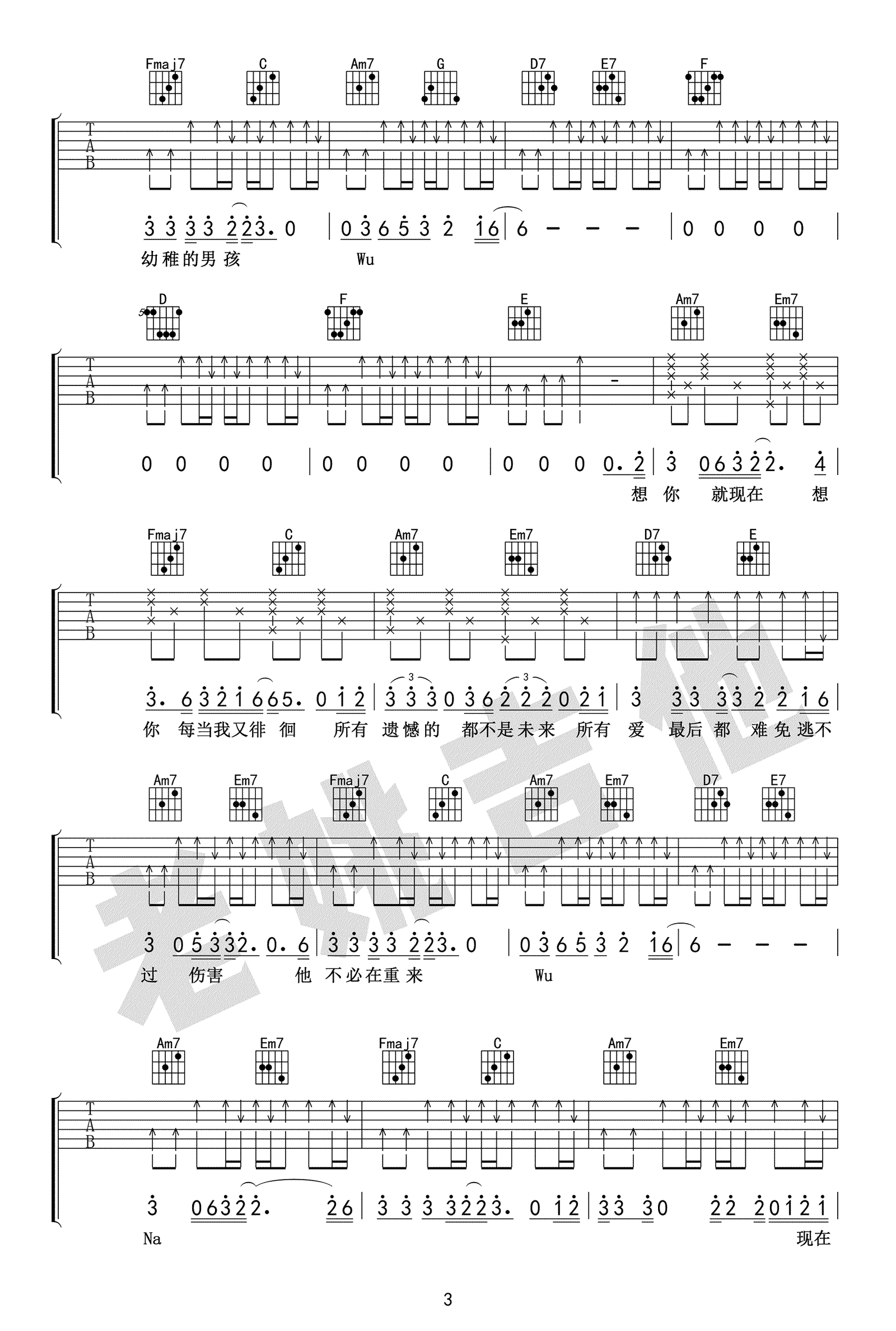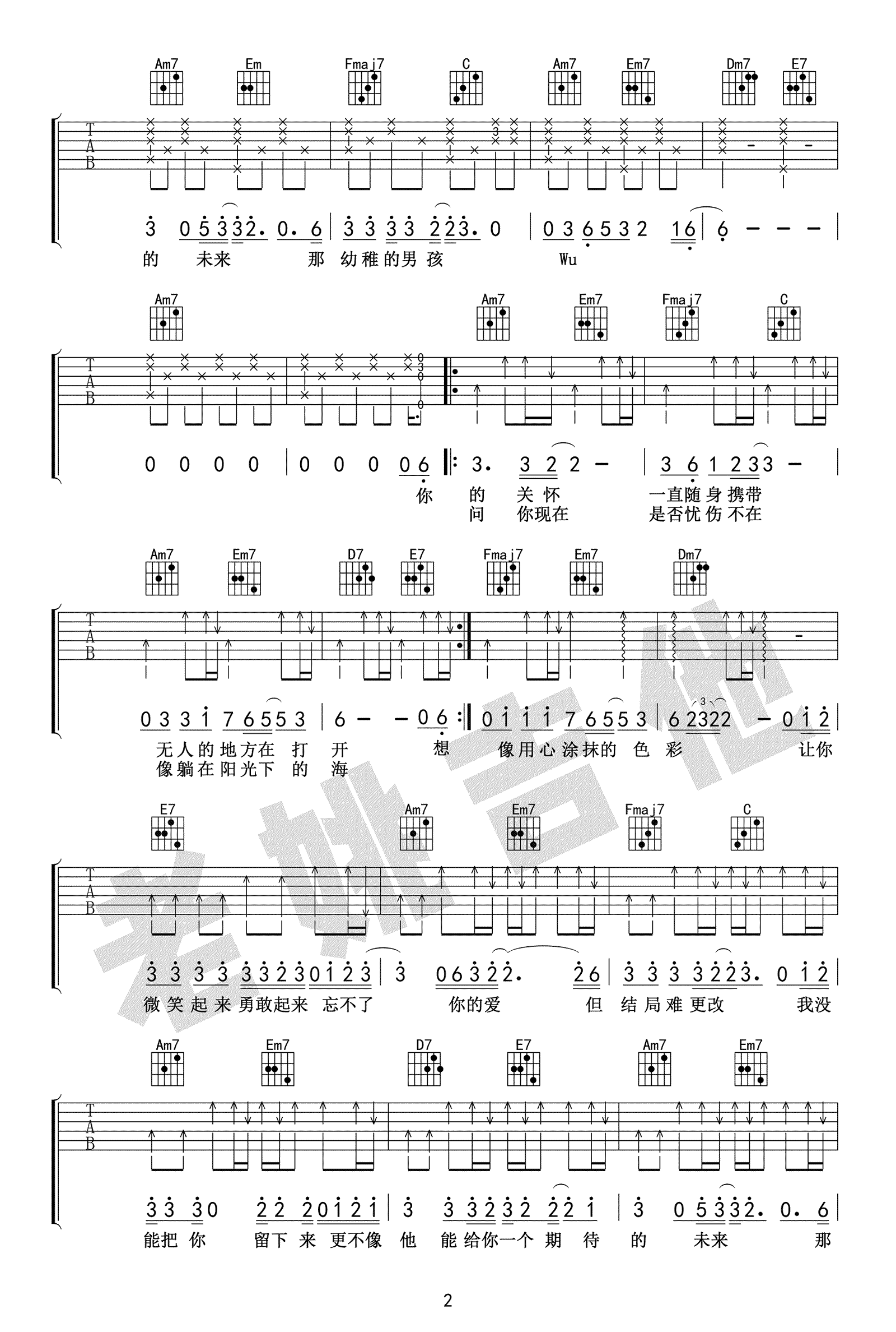- 梁博《男孩》吉他谱 C调弹唱六线谱 高清版