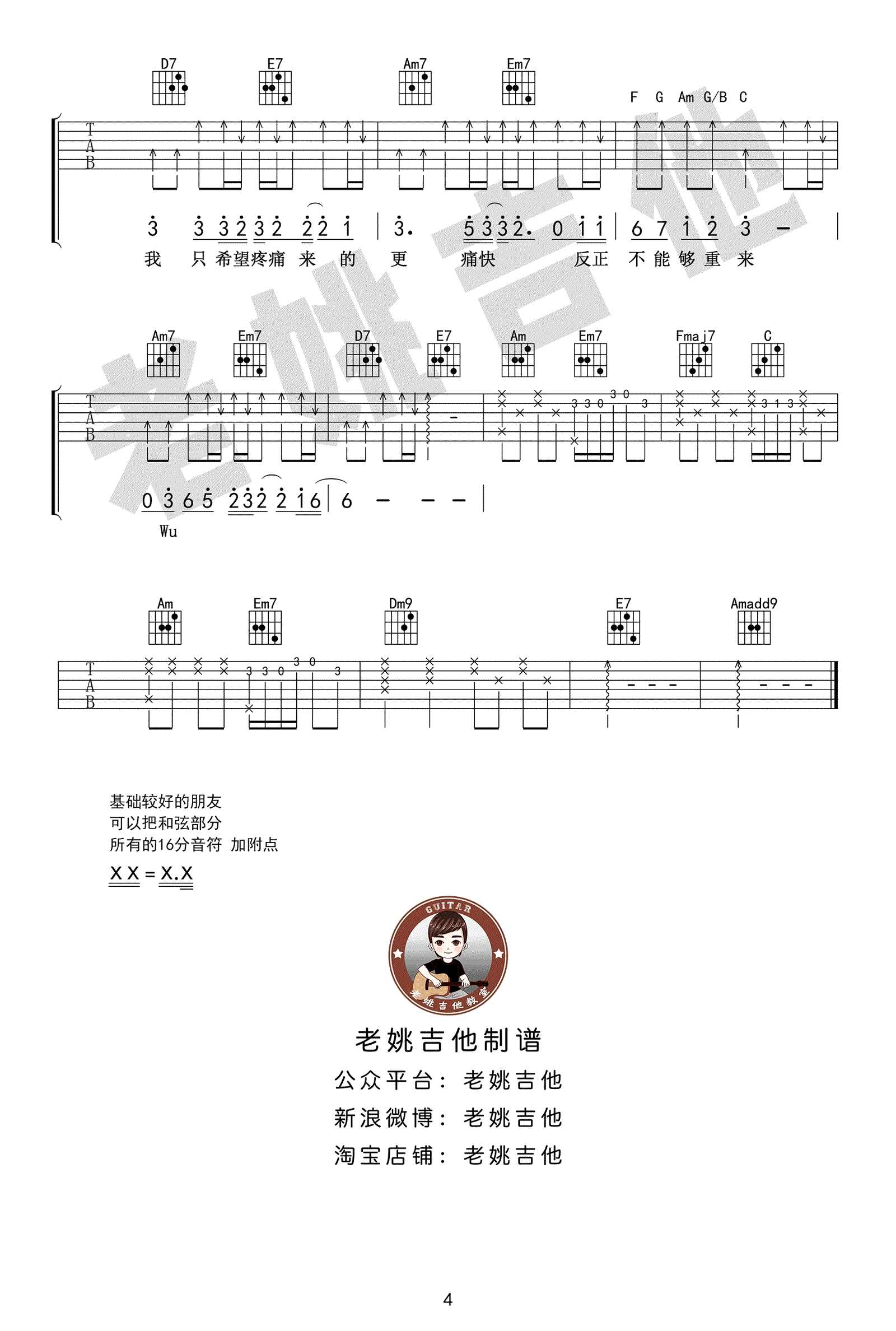 - 下坠吉他谱 汪峰《歌手》弹唱谱_下坠六线谱_吉他简编版