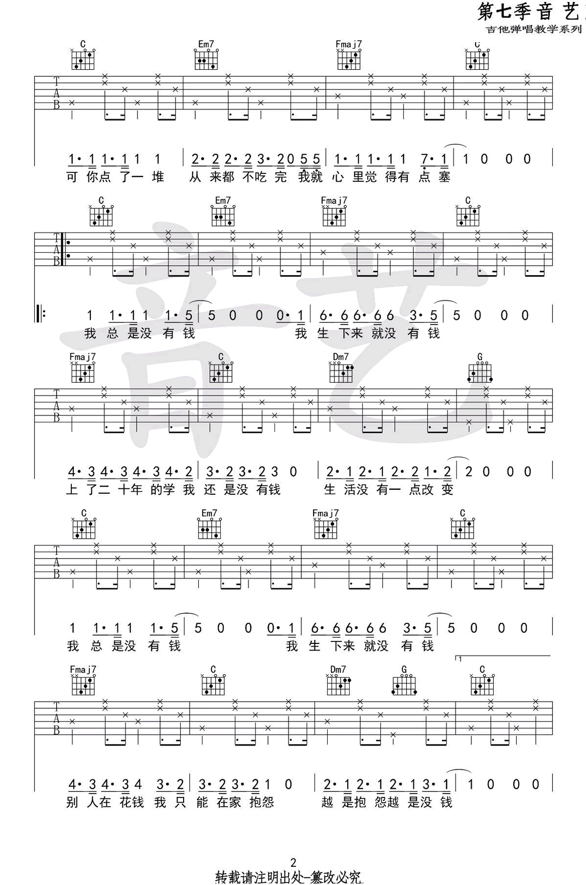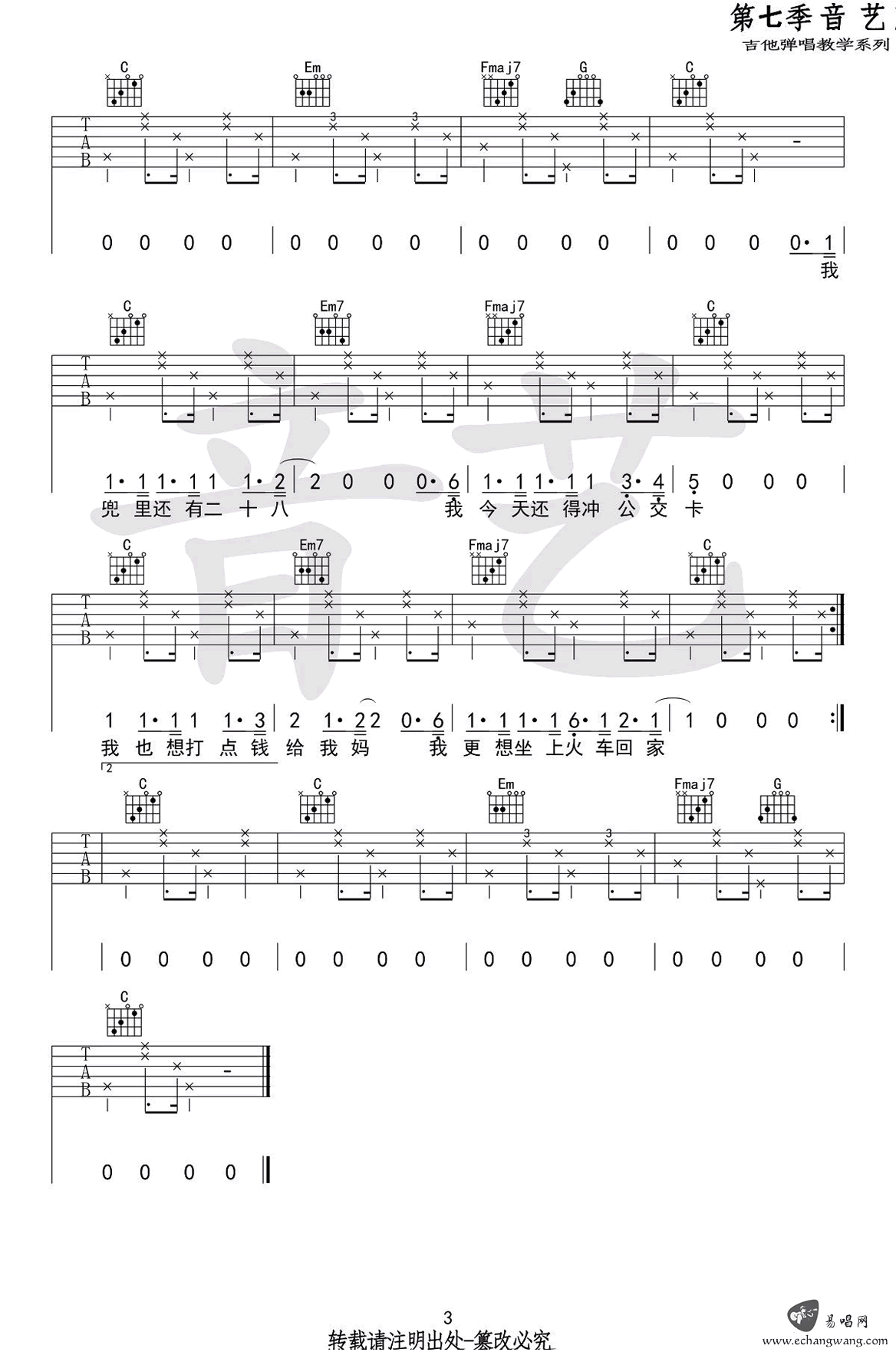 - 屌丝之歌六线谱 花粥《屌丝之歌》吉他谱 C调弹唱谱