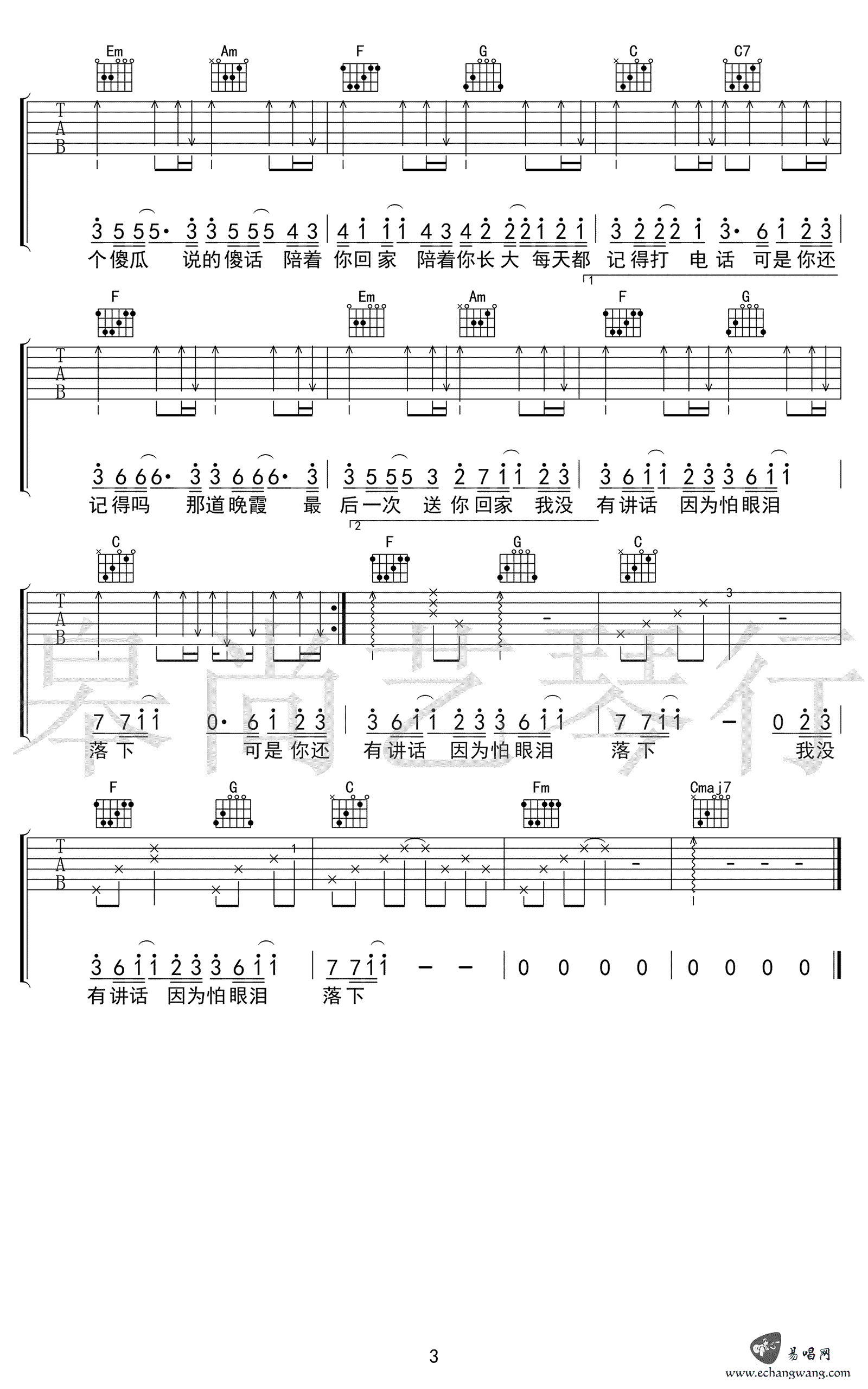- 女儿情吉他谱 C调简单版 《西游记》插曲 吉他弹唱教学